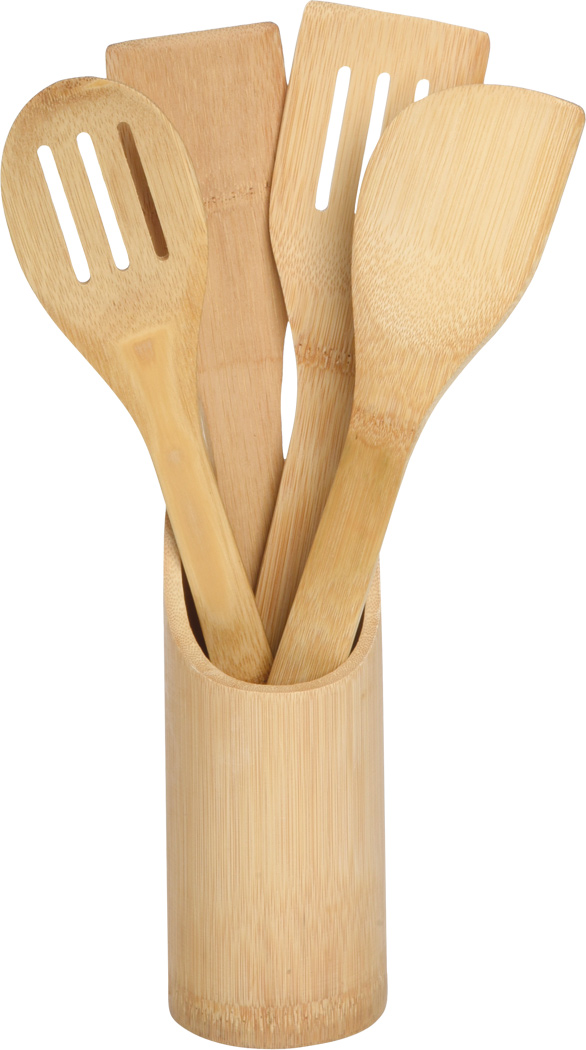 Küchenhelfer-Set COOKING TIME, 5-teilig: aus Bambus mit Halter, Kochlöffeln und Pfannenwender
