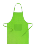 Farbige Schürze mit Brusttasche. Material: 35 % Baumwolle, 65 % Ployester.