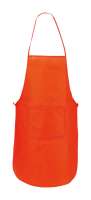 Farbige Schürze mit Vordertaschen. Material: 80% Polyester / 20% Baumwolle.