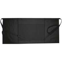 Für Gastronomie und Servier-Profis zuhause. Hochwertiger schwarze Taillen-Schürze aus Baumwolle (180 g / qm) mit zwei aufgesetzten Fronttaschen. Länge seitliche Bänder: jeweils ca. 85 cm.