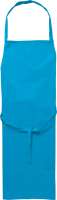 Hochwertige Schürze aus TC-Material - Baumwoll / Polyester-Mischgewebe - in verschiedenen kräftigen Farben. Mit doppelter Fronttasche und zweifarbigen Einstellbändern. Schlitz über dem Knie.