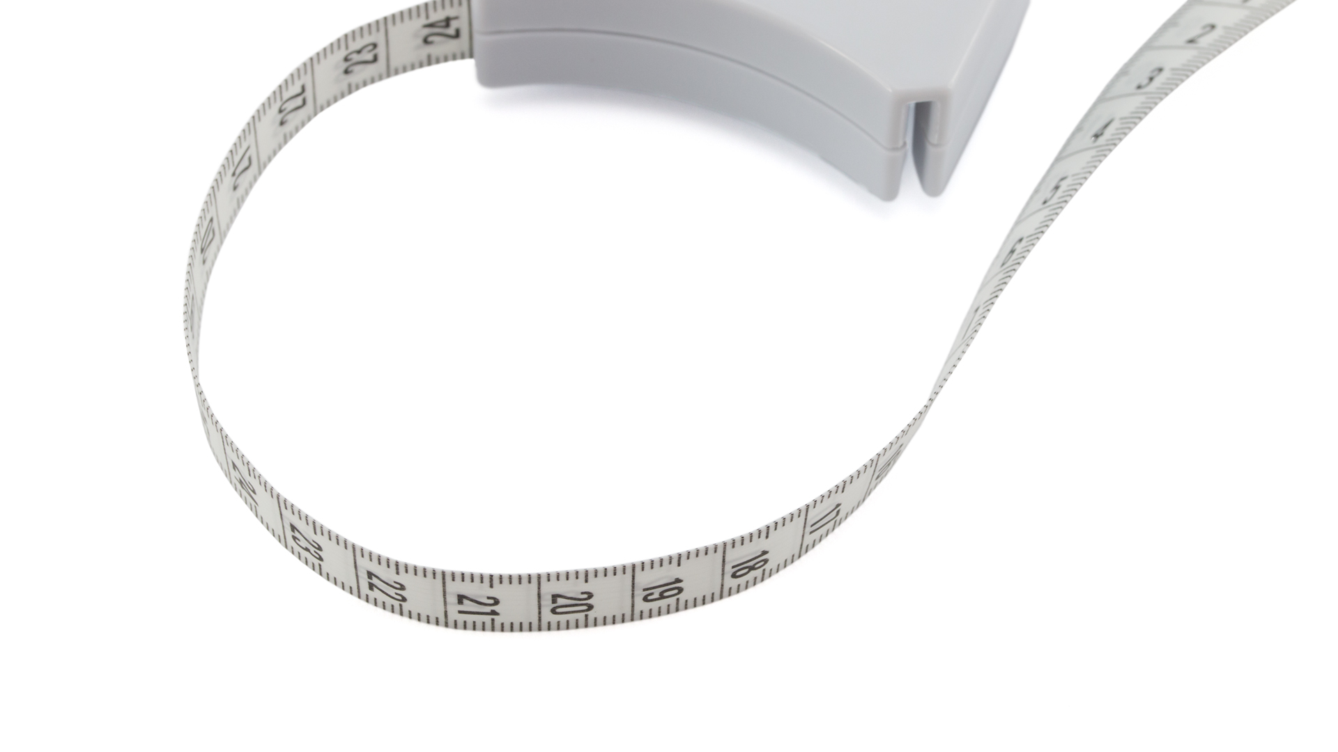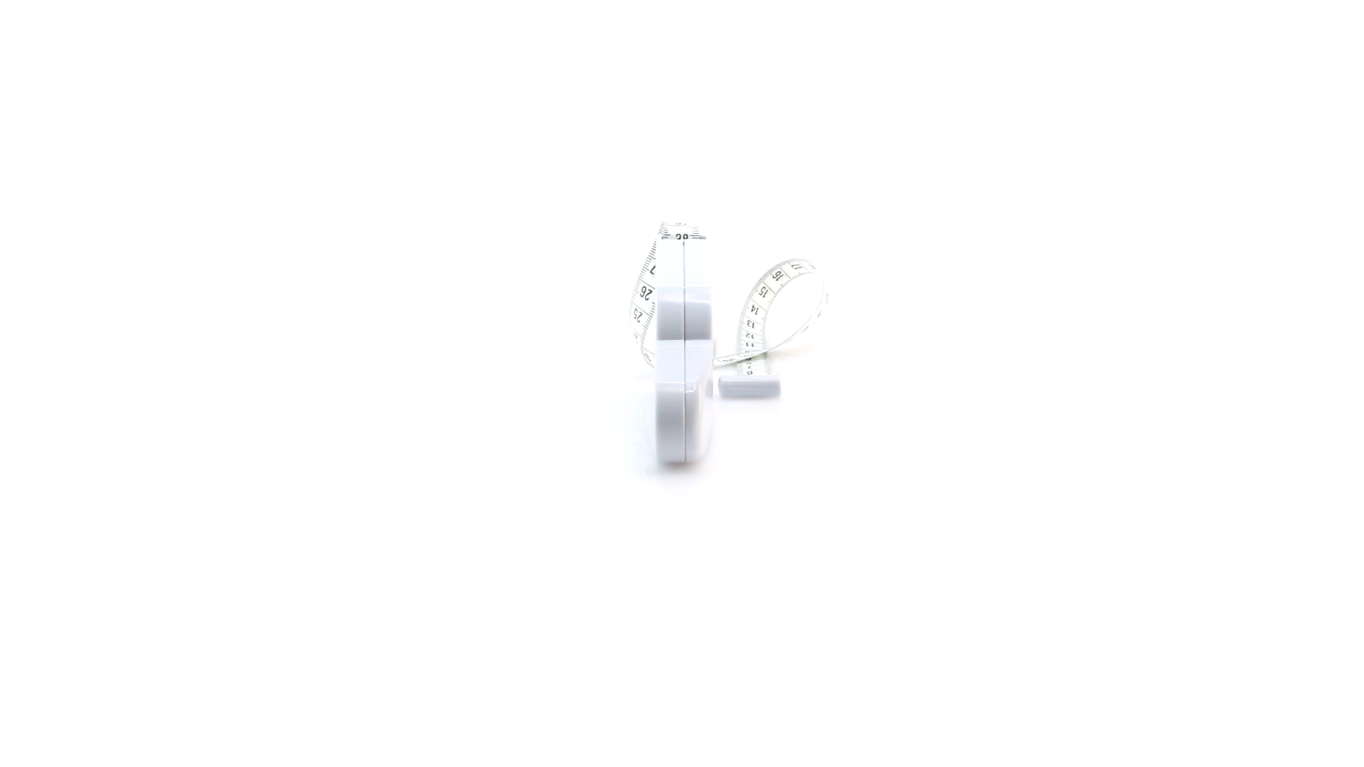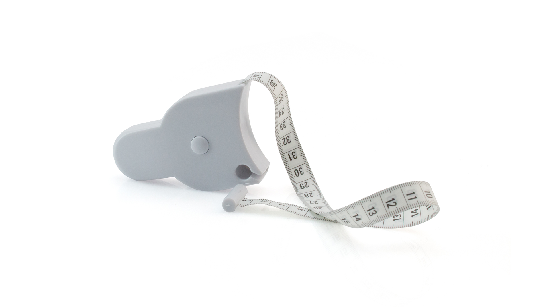 Körper-Maßband aus PVC von 175 cm Länge. Selbstaufrollend per Knopfdruck.