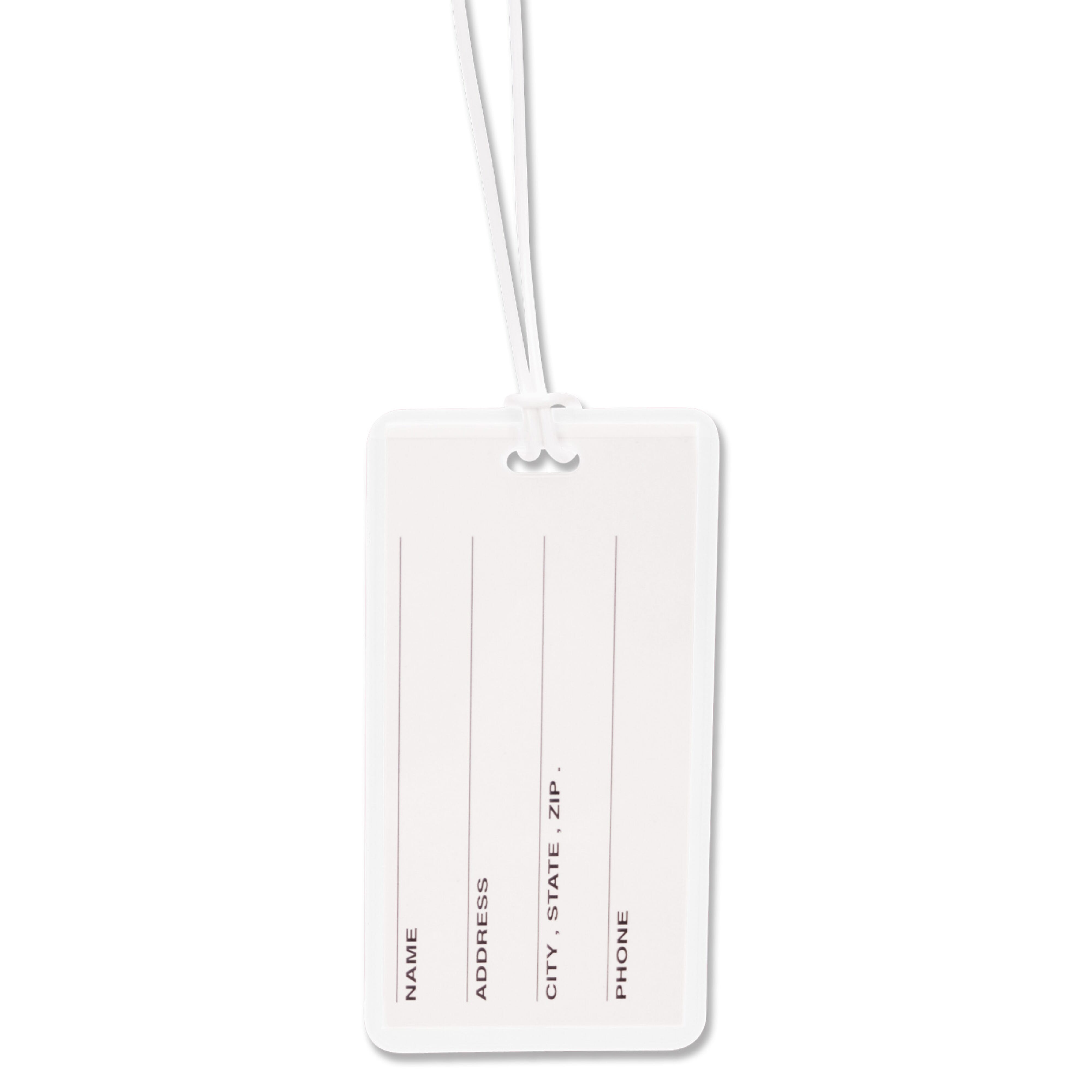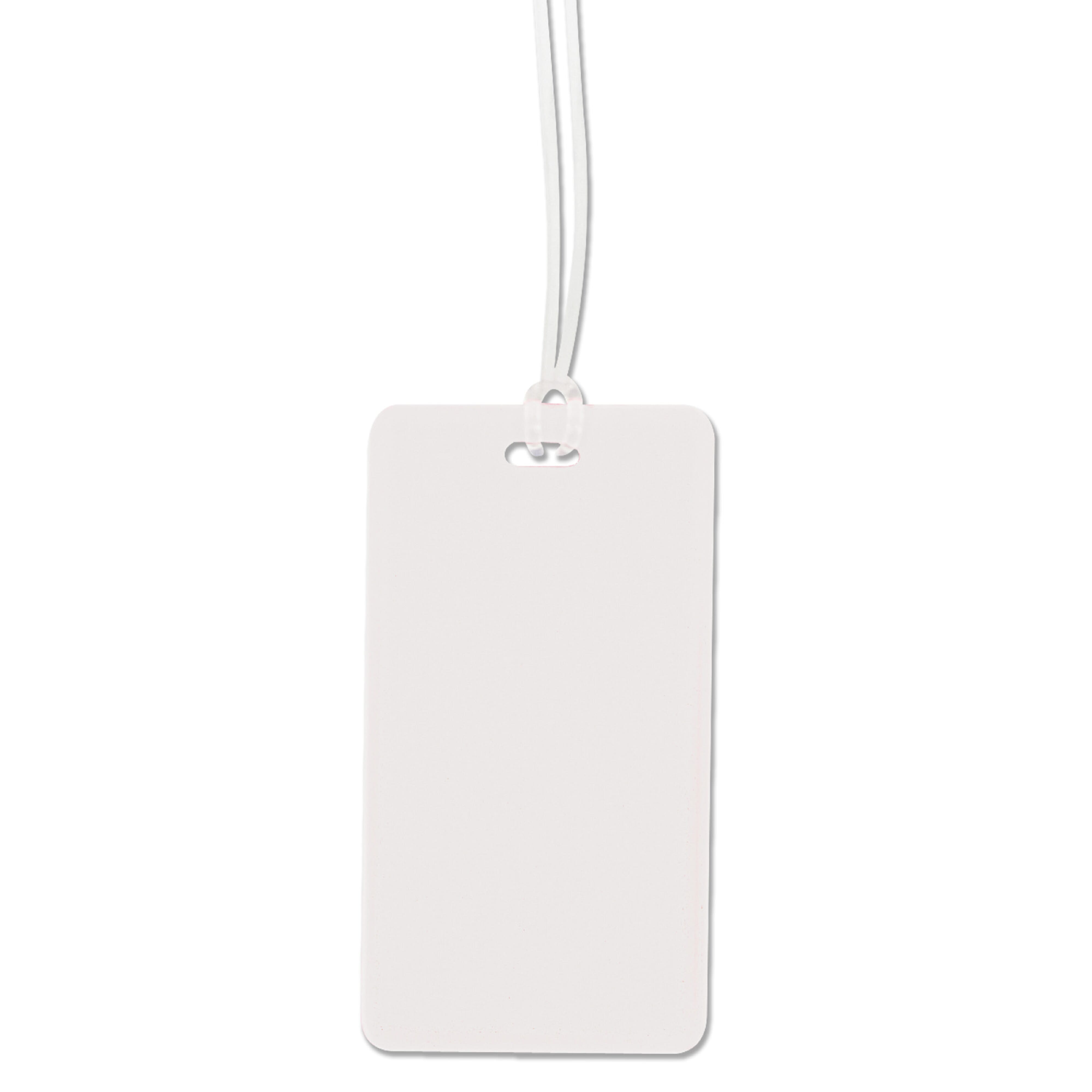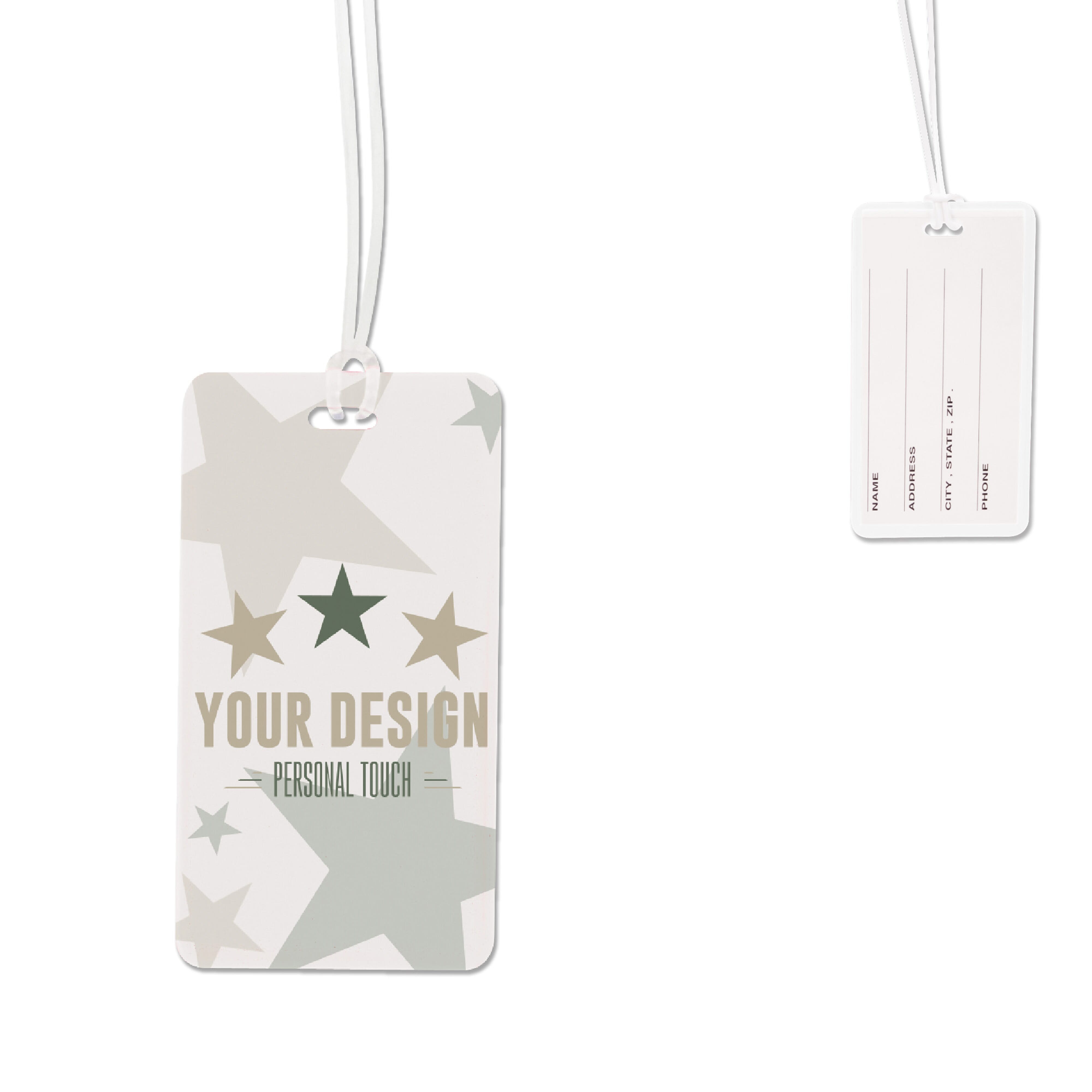 Praktischer Kofferanhänger aus PVC mit einer großen Werbefläche. Im Inneren des Etiketts befindet sich eine herausnehmbare Karte, auf die Sie Ihre Adressdaten schreiben können.