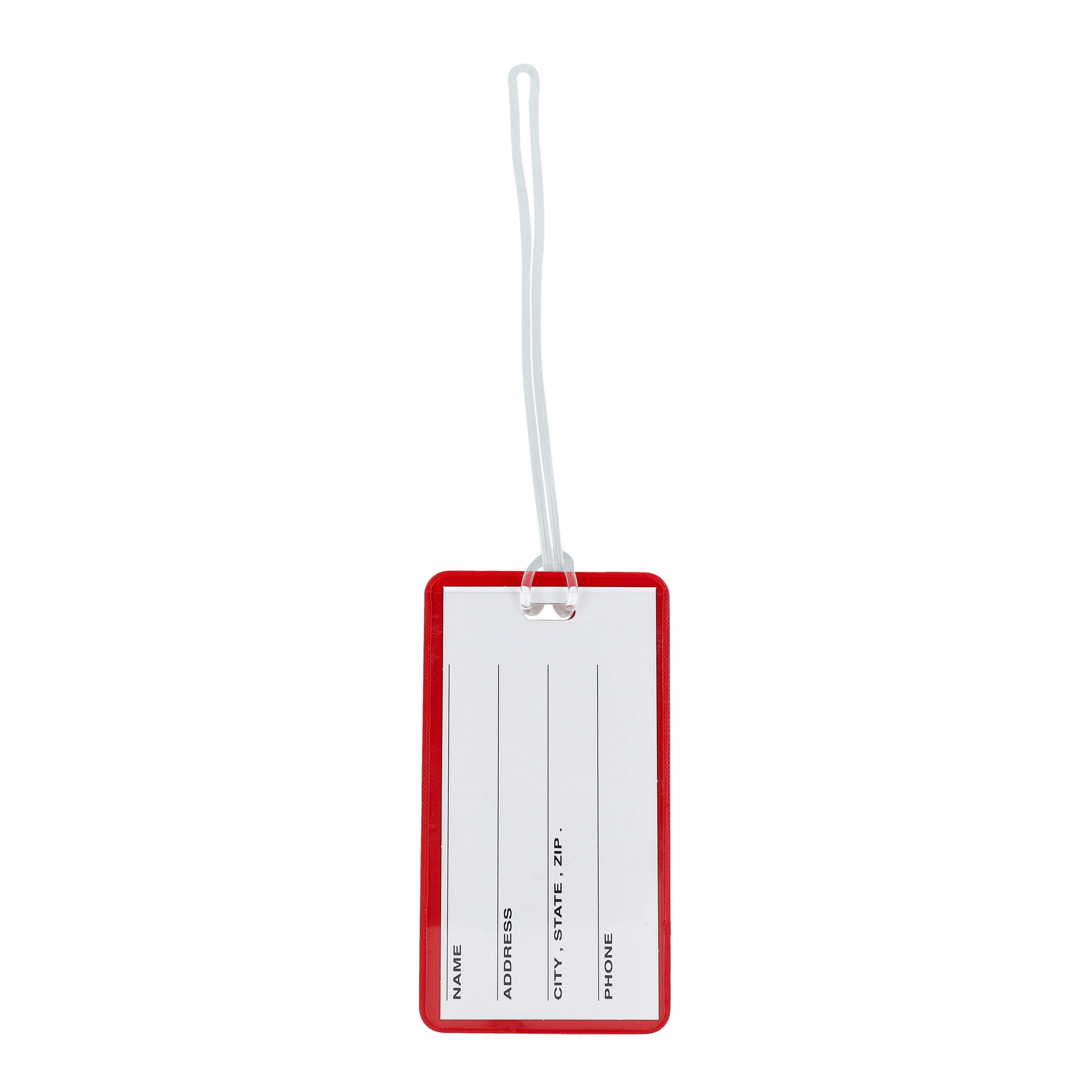 Praktischer Kofferanhänger aus PVC mit einer großen Werbefläche. Im Inneren des Etiketts befindet sich eine herausnehmbare Karte, auf die Sie Ihre Adressdaten schreiben können.