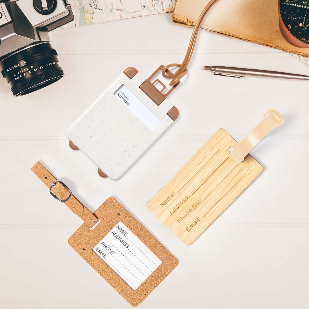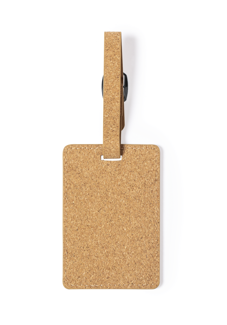 Linie Natur Kofferanhänger aus Naturkork. Band mit Metallschnallenverschluss und Identifikationskarte in englischer Sprache.