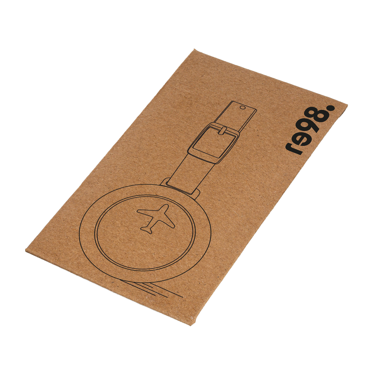 Diese REFLECTS® Eigenentwicklung ist ein unverzichtbarer Begleiter auf jeder Reise. Der Kofferanhänger zeichnet sich durch modernes Design und trendige Farben aus, von dezentem Schwarz-Schwarz bis zu leuchtendem Rot-Silber. Die Aluminiumplatte hat ein ausgestanztes Flugzeug-Motiv auf der Vorderseite und liegt sicher im umschließenden Silikon. Zwischen der Silikonhülle und Aluminiumplatte befindet sich ein Papier-Inlay für Name, Adresse und Telefonnummer. Auf diese Weise bleiben die persönlichen Daten verdeckt. Das Band aus Kunstleder mit Metall-schnalle ermöglicht sicheres Befestigen des Anhängers an Koffer oder Rucksack. Der Artikel kann mittels Lasergravur veredelt werden.
