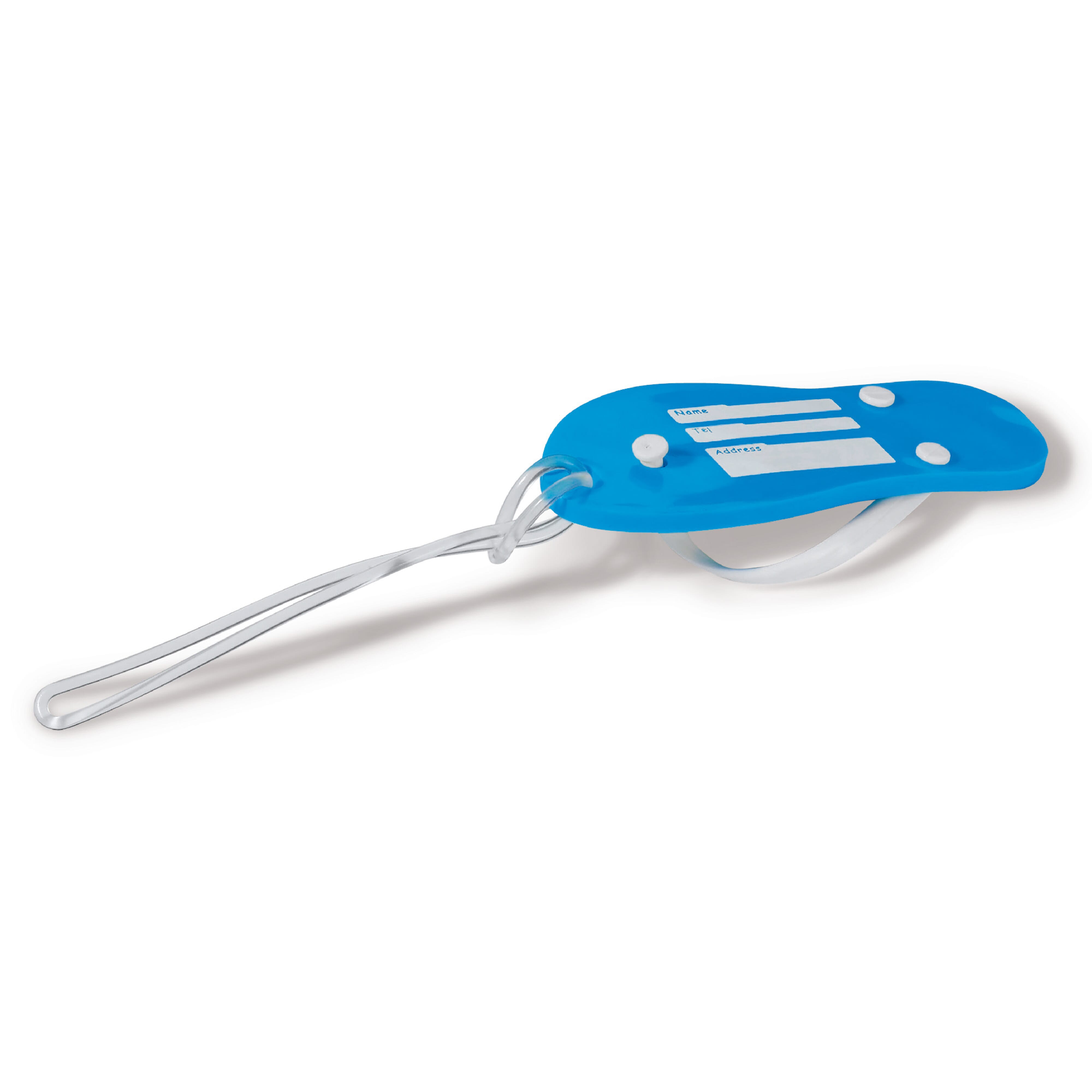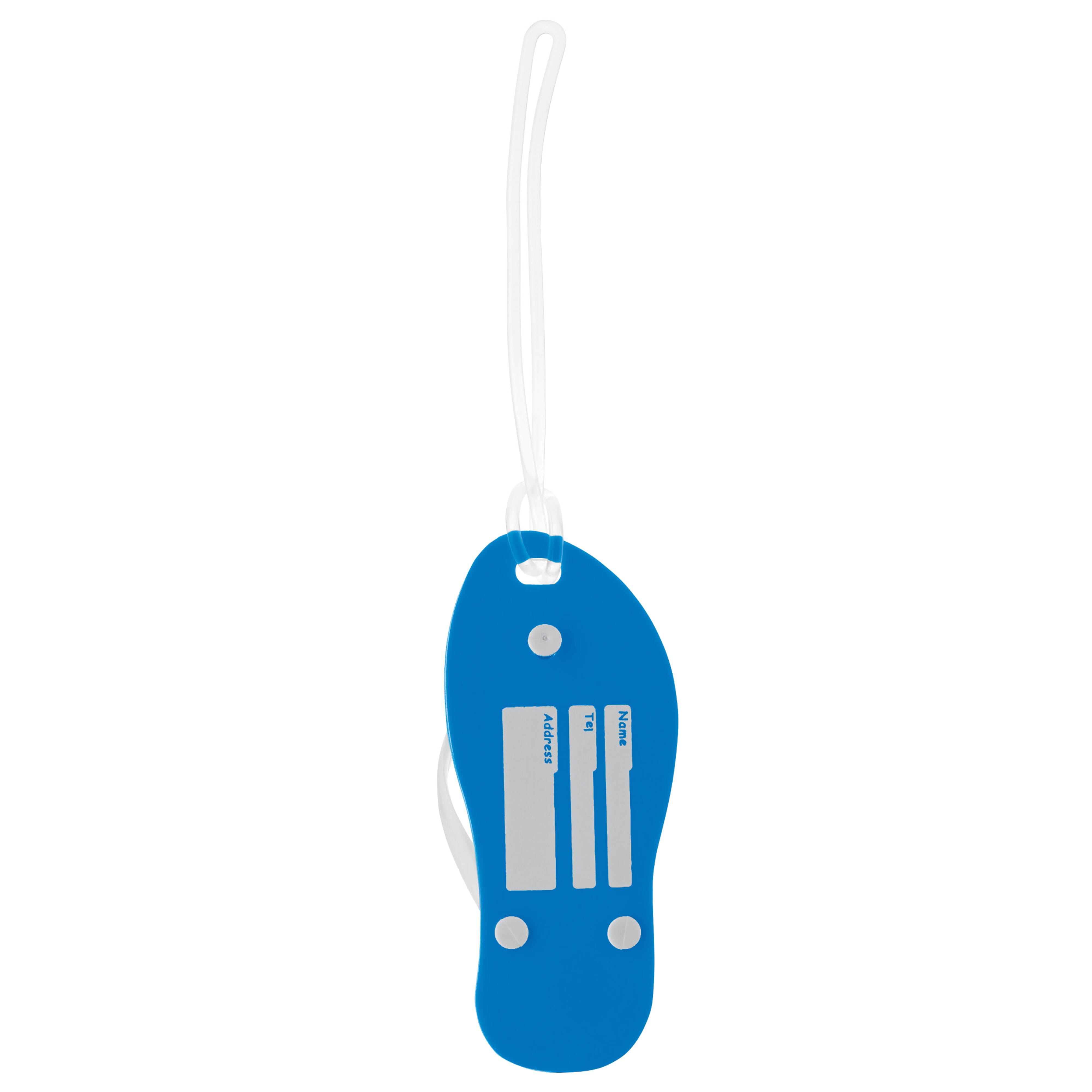 Kofferanhänger in Form eines Slippers. Mit diesem Kofferanhänger beginnt ihr Urlaub bereits zu Hause. Durch diese einzigartige Form erkennen Sie schnell Ihr Gepäck.
