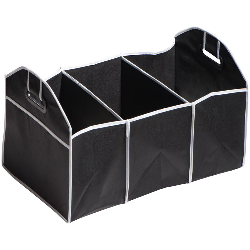 Non Woven Einkaufswagen- und Kofferraumtasche zum Ausziehen. Der Werbeaufdruck erfolgt auf einer Seite.