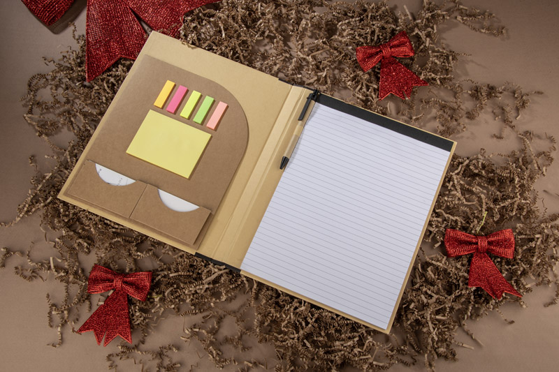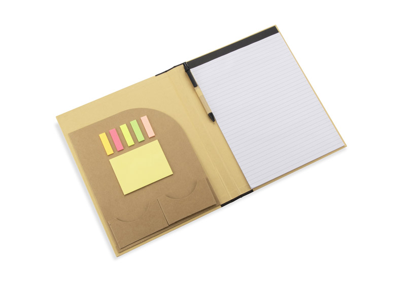 Die A4- Konferenztasche DOSI ist ein praktisches und universelles Produkt, das sich ideal für Geschäftstreffen und Konferenzen eignet. Sie verfügt über ein liniertes Notizbuch, ein Dokumentenfach und zwei kleinere Fächer für Visitenkarten und Notizen. Die Mappe ist gepolstert und wird mit einem Papierstift, gelben Haftnotizen und einem Satz kleiner Zettel geliefert, die sich ideal zum Markieren wichtiger Stellen in Ihren Notizen eignen. Die DOSI wird mit einem Gummiband verschlossen, damit die Dokumente nicht verloren gehen. Hergestellt aus Papier, einer umweltfreundlichen Alternative zu Mappen aus synthetischen Materialien.