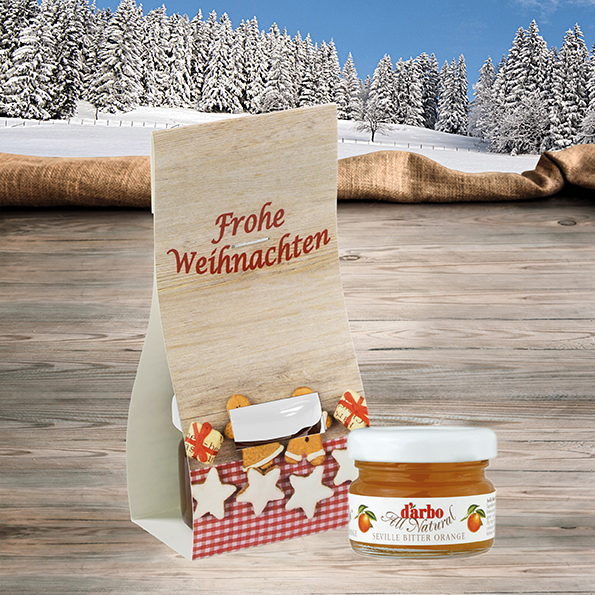 Ob zum Naschen zwischendurch oder eine Dosis für das Frühstücksbrot – das Mini-Gläschen mit Konfitüre ist "was für’s Auge" und ein Genuss. In der praktischen und werblich großen Überreichverpackung eignet sich das Gläschen als genussvolles Werbegeschenk – schließlich geht nicht nur Liebe durch den Magen. Füllgewicht: 28g
