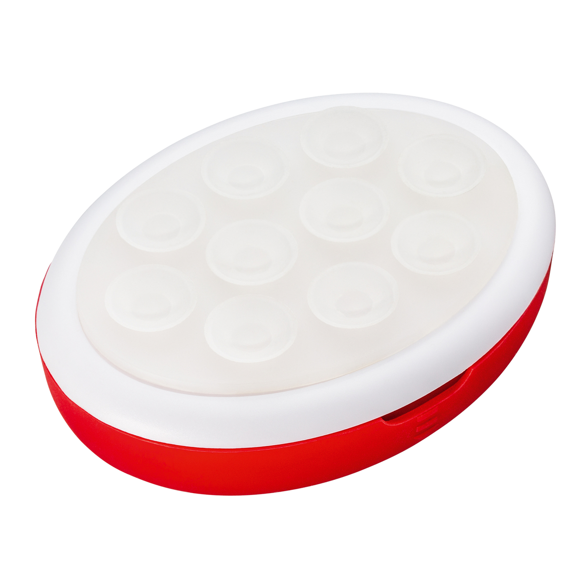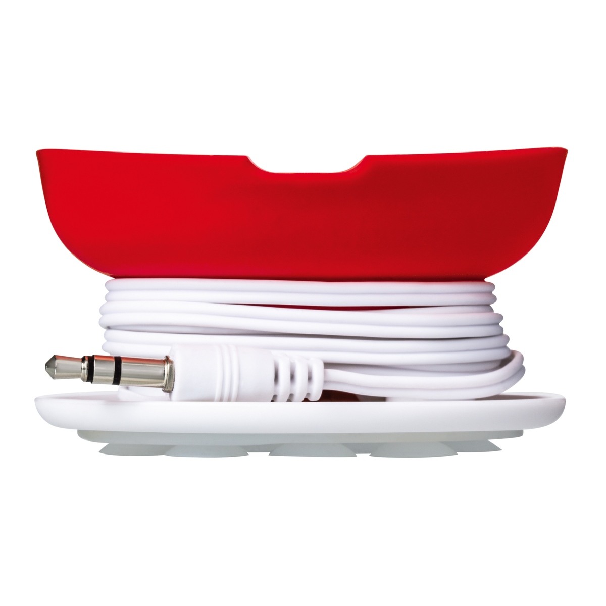 In dieser kleinen Box befindet sich ein Set Kopfhörer mit farblich passend abgesetzten Stöpseln. Die Box wird mit Saugnäpfen direkt am Smartphone befestigt und kann durch Ausklappen als Ständer fürs Gerät genutzt werden. Per REFLECTS-UV-Print veredelt, wirkt es besonders eindrucksvoll.