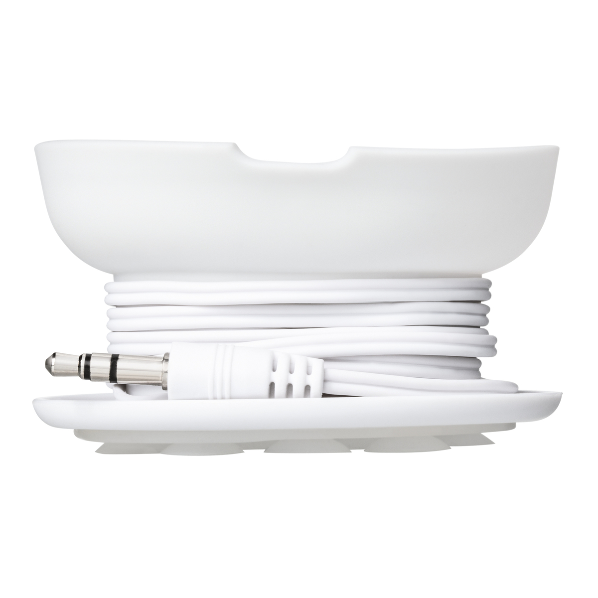 In dieser kleinen Box befindet sich ein Set Kopfhörer mit farblich passend abgesetzten Stöpseln. Die Box wird mit Saugnäpfen direkt am Smartphone befestigt und kann durch Ausklappen als Ständer fürs Gerät genutzt werden. Per REFLECTS-UV-Print veredelt, wirkt es besonders eindrucksvoll.