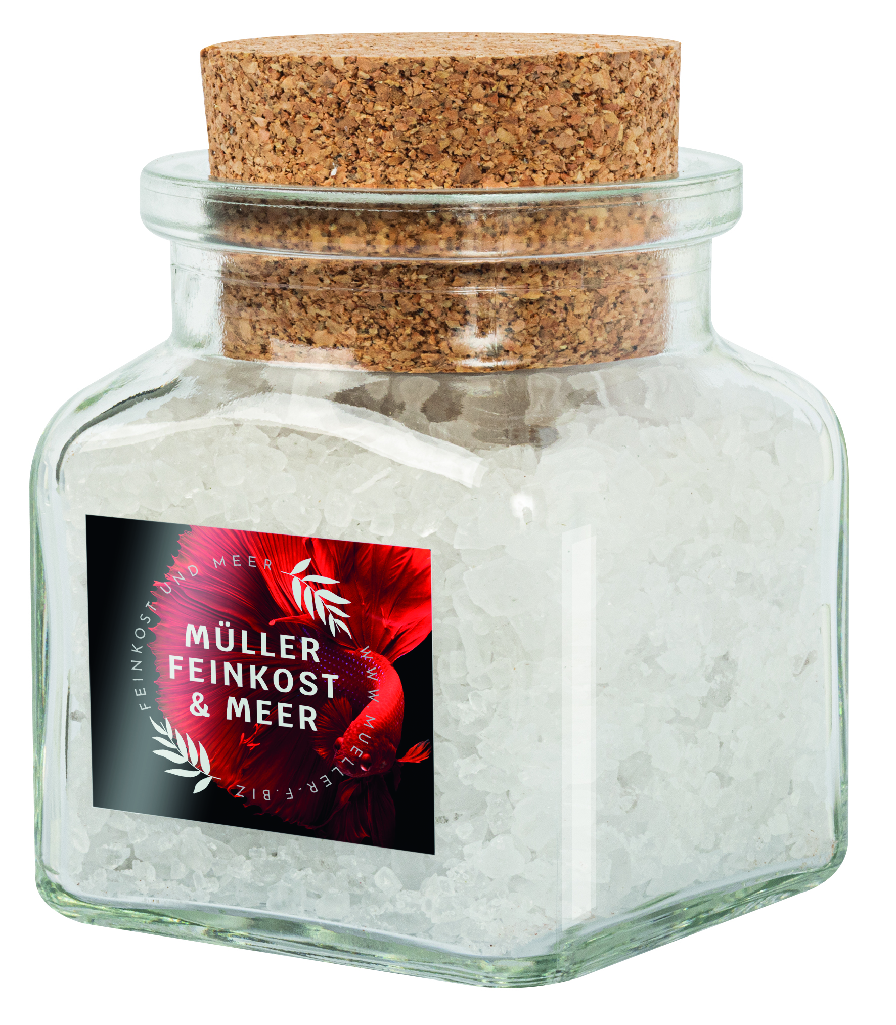 Edle eckige Korkengläser mit individuellem 4c-Etikett, befüllt mit hochwertigen Gewürzen oder einem süßen Topping. Ein Hingucker, der Wernebotschaften geschmackvoll und nachhaltig transportiert. Inhalt: max. 100 g je nach Füllsorte. Mögliche Füllungen: Glühweingewürz, Italienische Kräuter, Pfeffer geschrotet, Grillgewürz, Salatkräuter, Salz, Weihnachtsgewürz oder Süßes Topping "Schoko Verführung". Druckvorkosten inklusive.