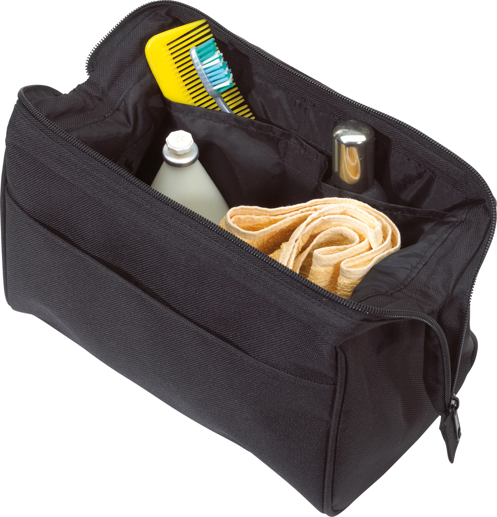 Kosmetiktasche DAYBREAK: Hauptfach mit Metallbügel verstärkt und mit Reißverschluss, innen Fach mit Klettverschluss und ein Reißverschluss-Fach, außen ein Klettverschluss-Fach