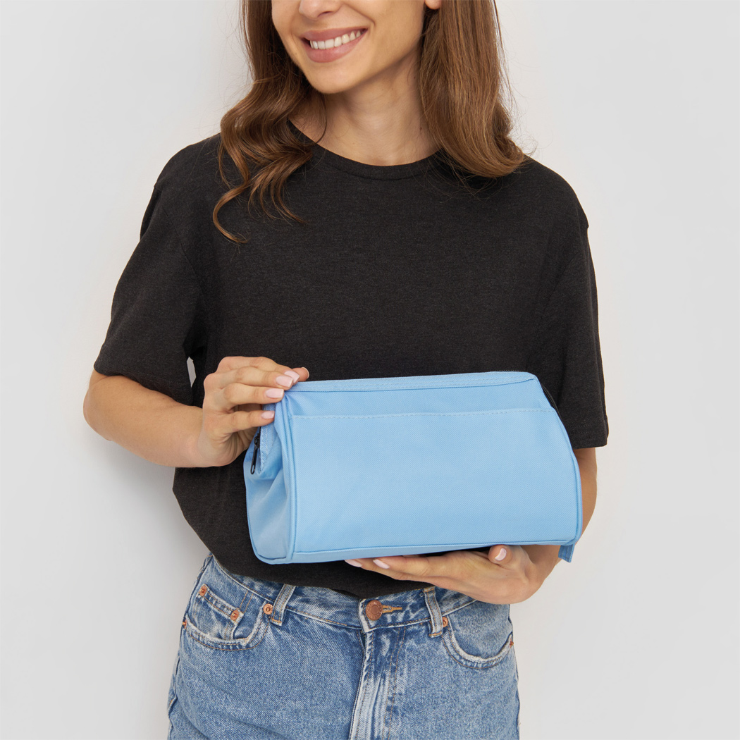Kosmetiktasche DAYBREAK: Hauptfach mit Metallbügel verstärkt und mit Reißverschluss, innen Fach mit Klettverschluss und ein Reißverschluss-Fach, außen ein Klettverschluss-Fach