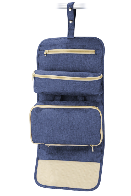Die Kosmetiktasche ROLLI zum Entrollen, bestätigt sich in jeder Reise. Die Kosmetiktasche ist mit zwei kleineren, abnehmbaren Beuteln, mit einer Tasche mit einem Schloss und einer Griff zur Befestigung der Tasche im Badezimmer z. B. an einen Handtuchhalter, ausgestattet. Die Kosmetiktasche ist aus weichem Doppelfaden-Polyester 300D hergestellt.