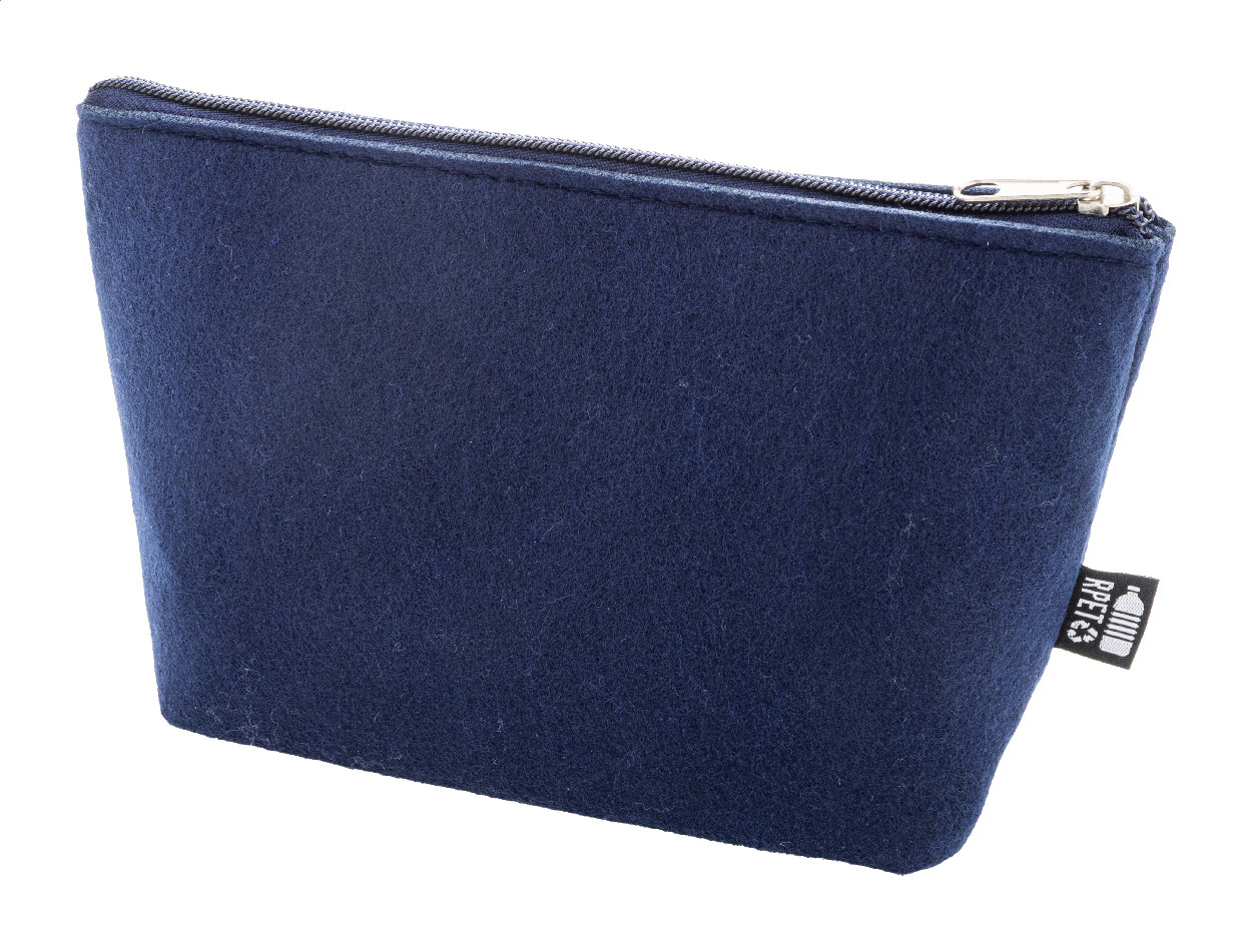 Kosmetiktasche aus RPET-Filz mit Reißverschluss. Mit RPET-Label.