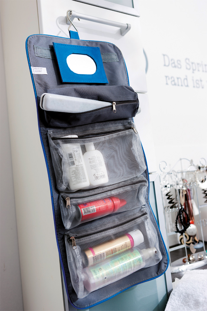 Kosmetiktasche STAR: mit 5 Reißverschluss-Taschen, abnehmbarem Spiegel, Tragegriff und Metallhaken zum Aufhängen