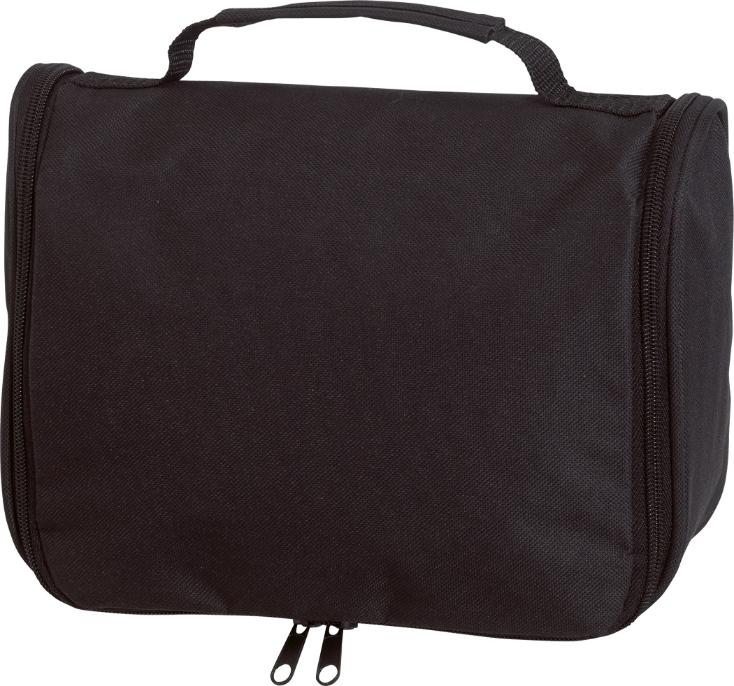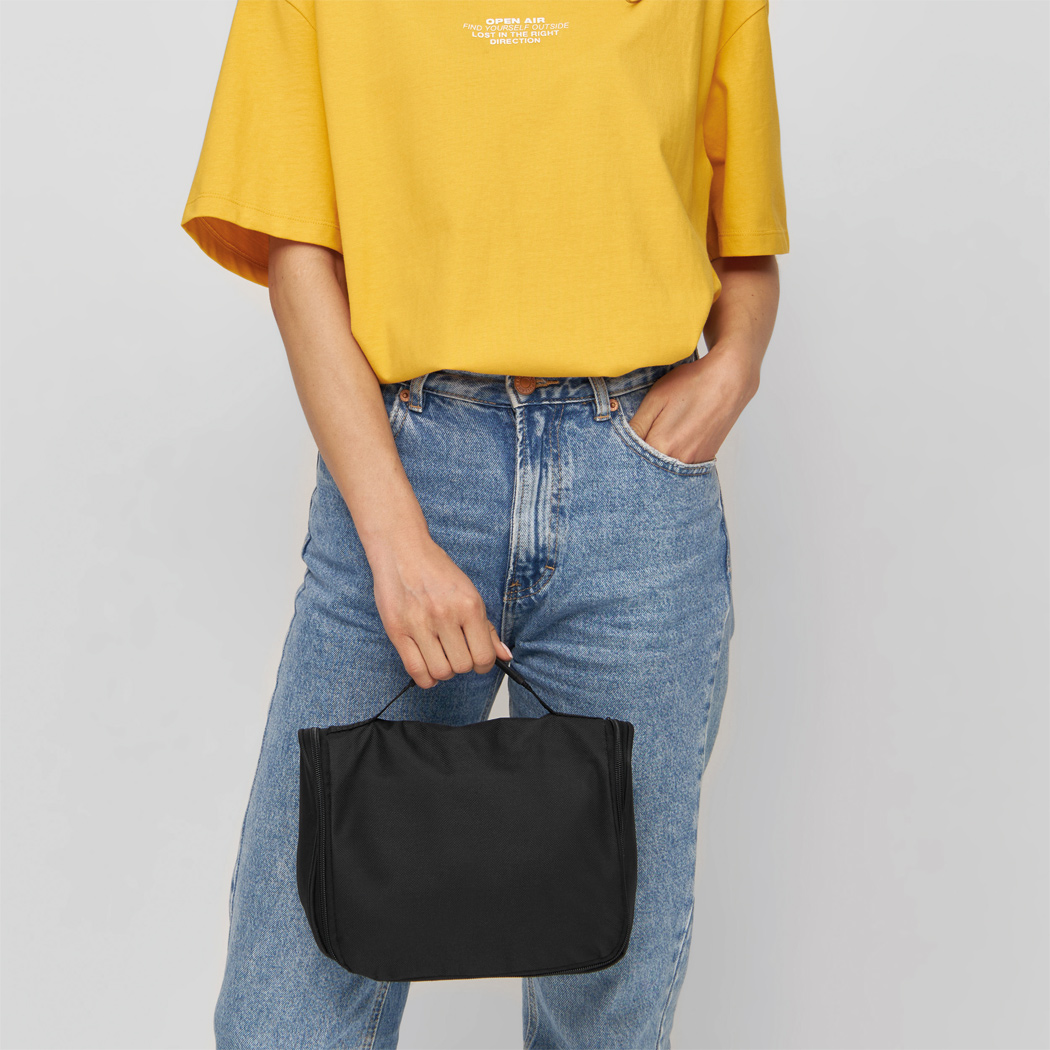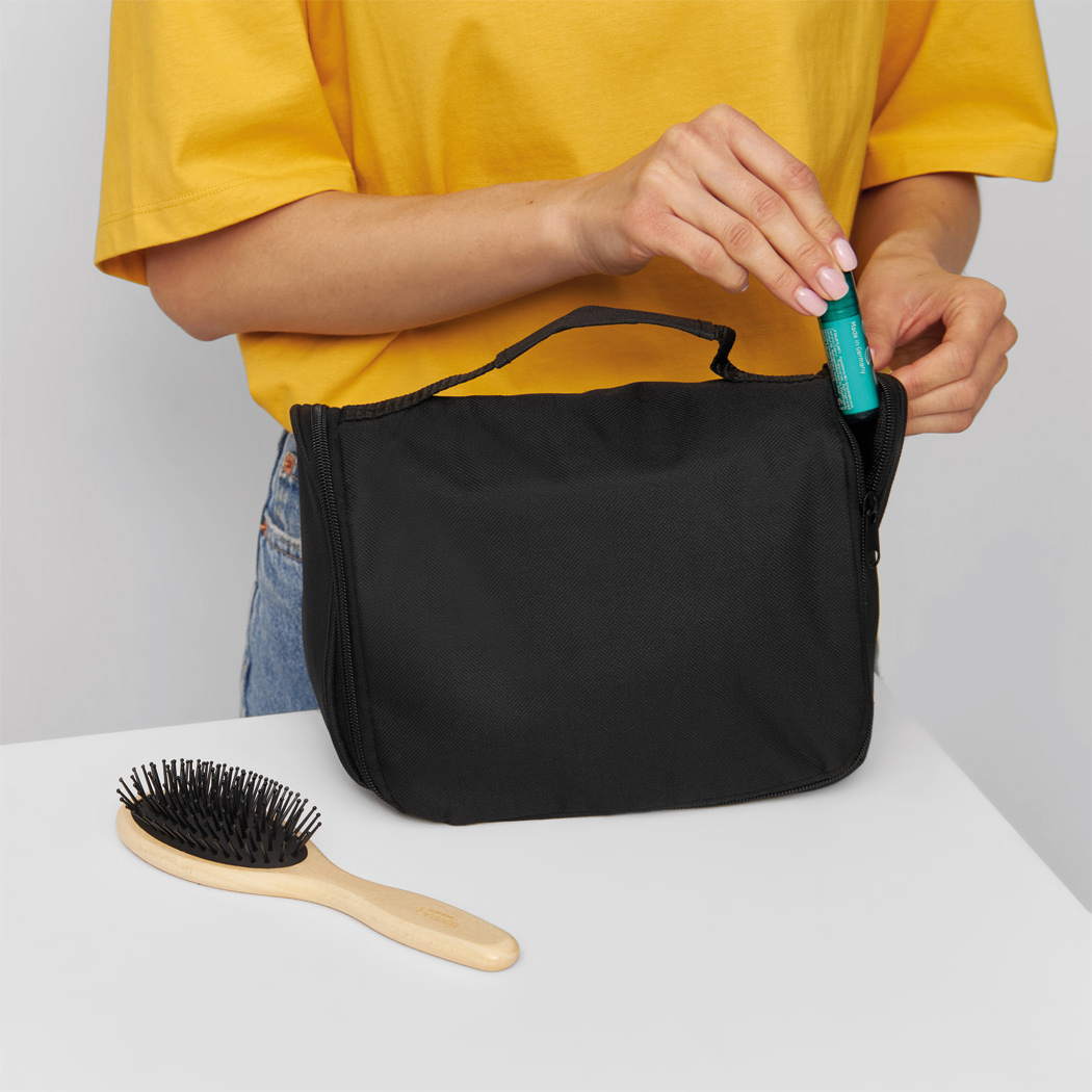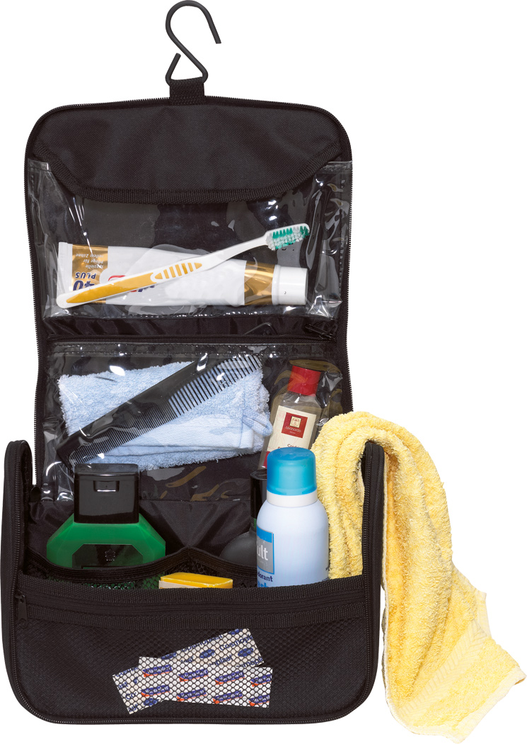 Kosmetiktasche WIDE AWAKE: mit Tragegriff und Reißverschluss-Hauptfach, innen 2 transparente Fächer, 3 Netzfächer und Metallhaken zum Aufhängen