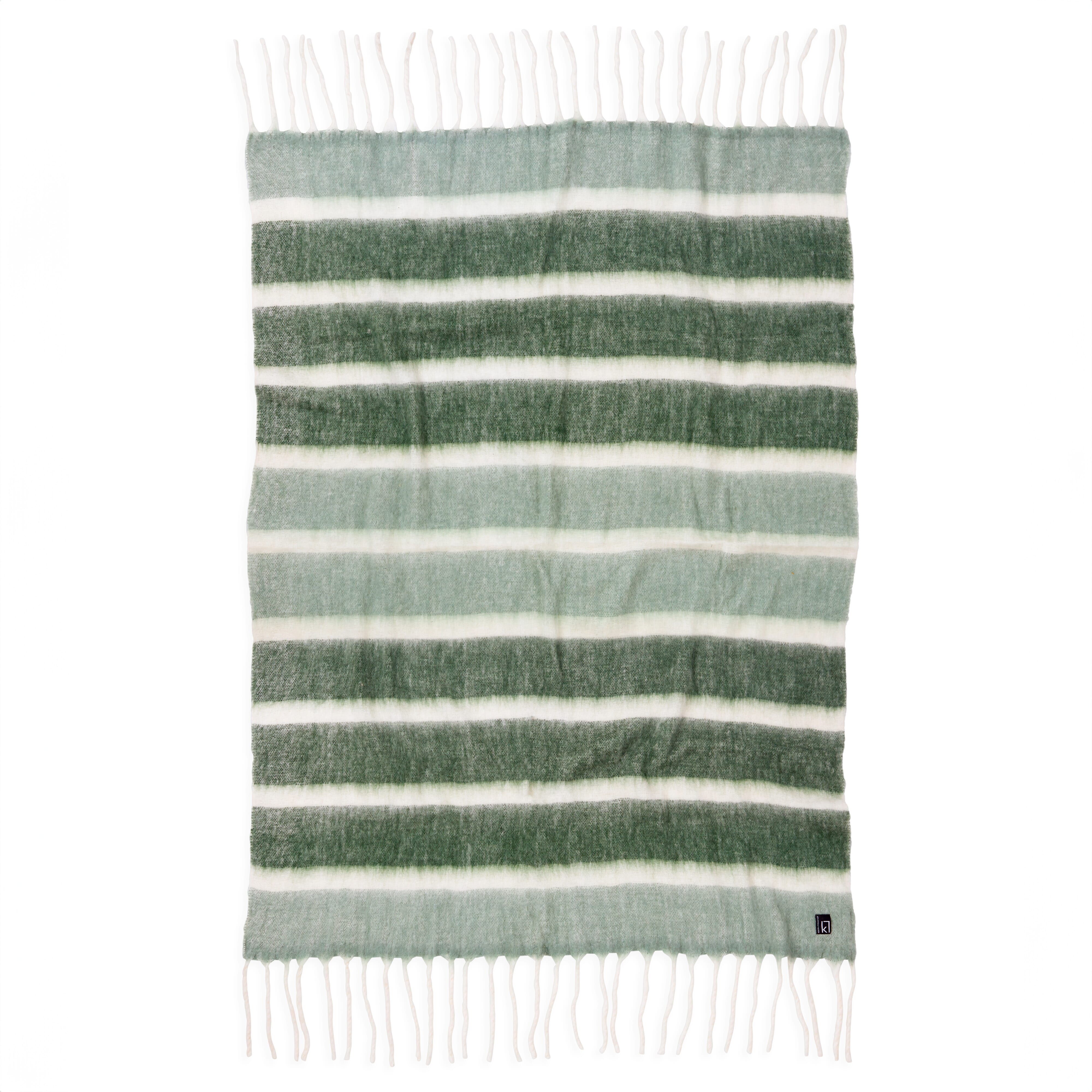 Dieses gestreifte, handgewebte Plaid ist sowohl gemütlich als auch stilvoll! Es ist aus hochwertiger Wolle und Acryl gefertigt und verleiht mit seinen großen, dicken Fransen einen zusätzlichen Hauch von Eleganz. Perfekt für einen kalten Winterabend.