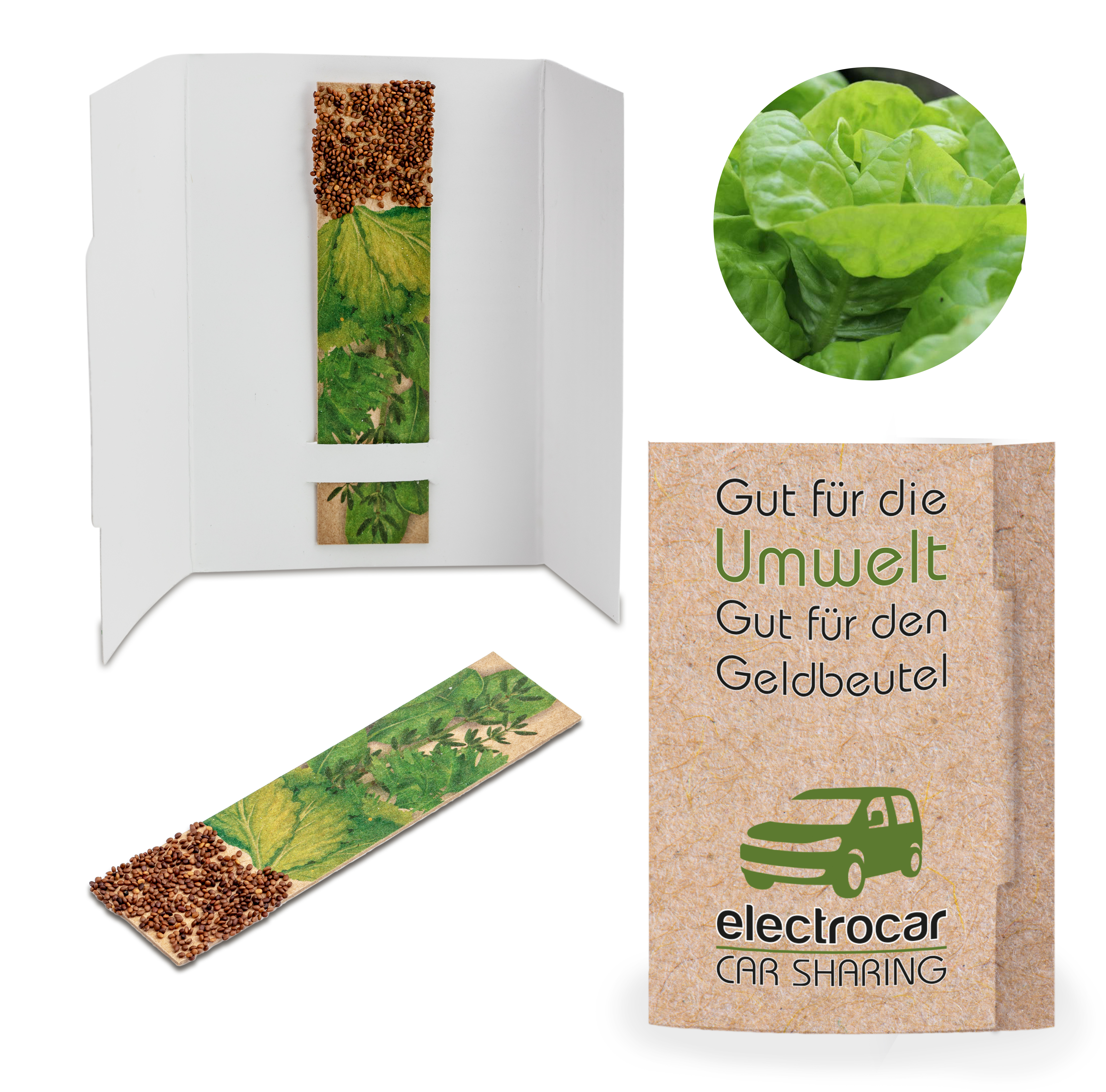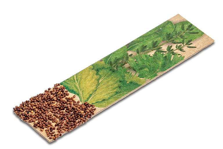 Frische Kräuter verfeinern jedes Essen und betören mit ihrem Duft. Am besten schmecken sie natürlich, wenn man sie selbst gezüchtet hat. Mit dem Kräuter-Stick geht das jetzt auf jeder Fensterbank, dem Bürotisch oder im Freien ganz einfach. Auf dem Pappstreifen aus Kraftpapier, bedruckt mit einem Bild leckerer Kräuter, werden mit Wachs Samen angebracht. Steckt man diesen nun in Erde und gießt fleißig, keimen leckere Gartenkräuter daraus. Die Verpackung in flacher Kartenform kann rundum gestaltet und bedruckt werden und ist durch die flache Form ein ideales Printmailing-Produkt. Lieferbar mit den Sorten Gartenkresse, Basilikum, Thymian, Majoran, Schnittlauch, Schnittsalat oder Petersilie. Also schnell ran an die veganen Superfoods.