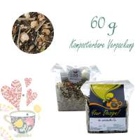 Zutaten: Hanfsamen, Griechischer Bergtee (15%), Krauseminze (15%), Pfefferminze (14%), Zitronengras, Zitronenverbene, Ringelblumenblüten, Pfirsichstücke (1%) (Pfirsiche, Zucker), natürliches Aroma.