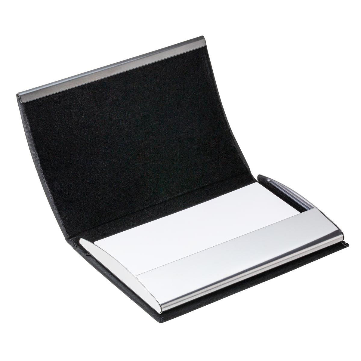Dieses Visitenkartenetui besticht durch eine schöne Kombination aus PU Material und hochwertiger Gunmetal Veredelung. Durch die Mehrschichtige Verarbeitung kommt bei einer Lasergravur die Kontrastfarbe des PU Materials zum Vorschein, die die Visitenkartenbox in einen hochwertigen Eyecatcher verwandelt. Diese Box eignet sich für eine Aufbewahrung von ca. 30 Visitenkarten.