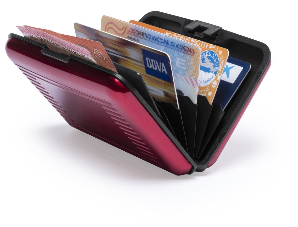Kredikartenetui mit RFID-Ausleseschutz aus Aluminium für bis zu 6 Kreditkarten.