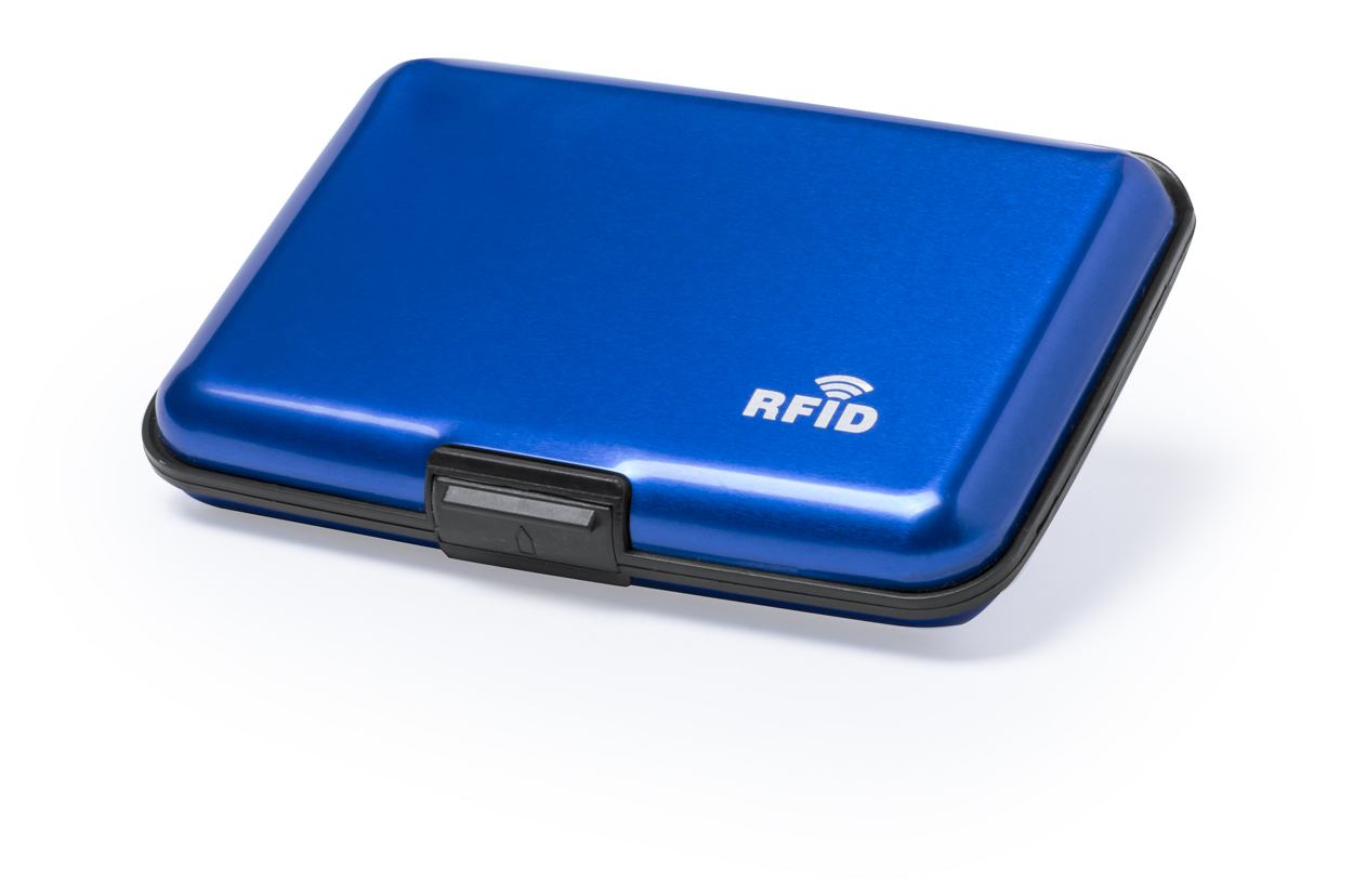 Kredikartenetui mit RFID-Ausleseschutz aus Aluminium für bis zu 6 Kreditkarten.