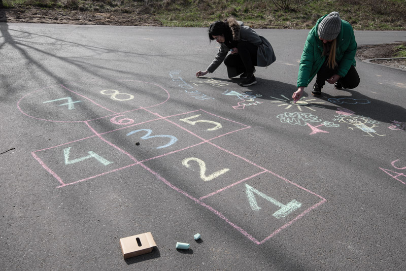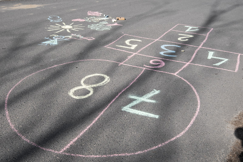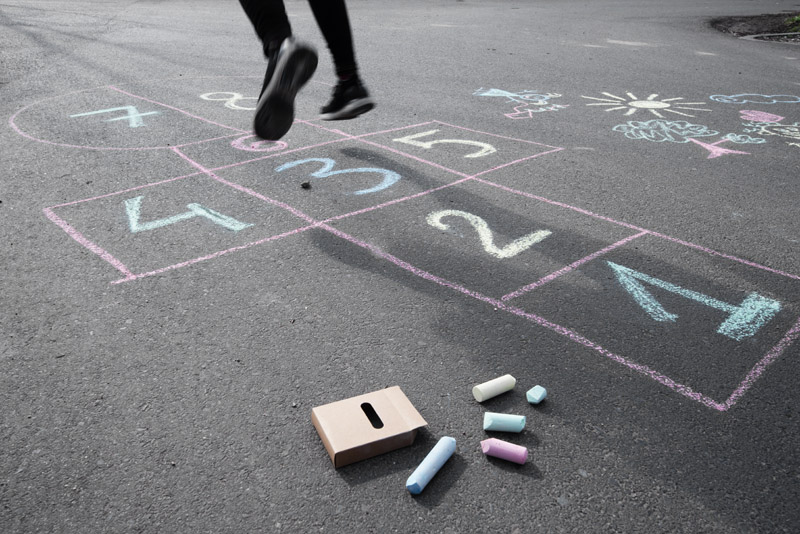 Bunte Kreide in 4 Farben, verpackt in einer braunen Pappschachtel. Ideal zum Spielen im Garten und bei verschiedenen Veranstaltungen.