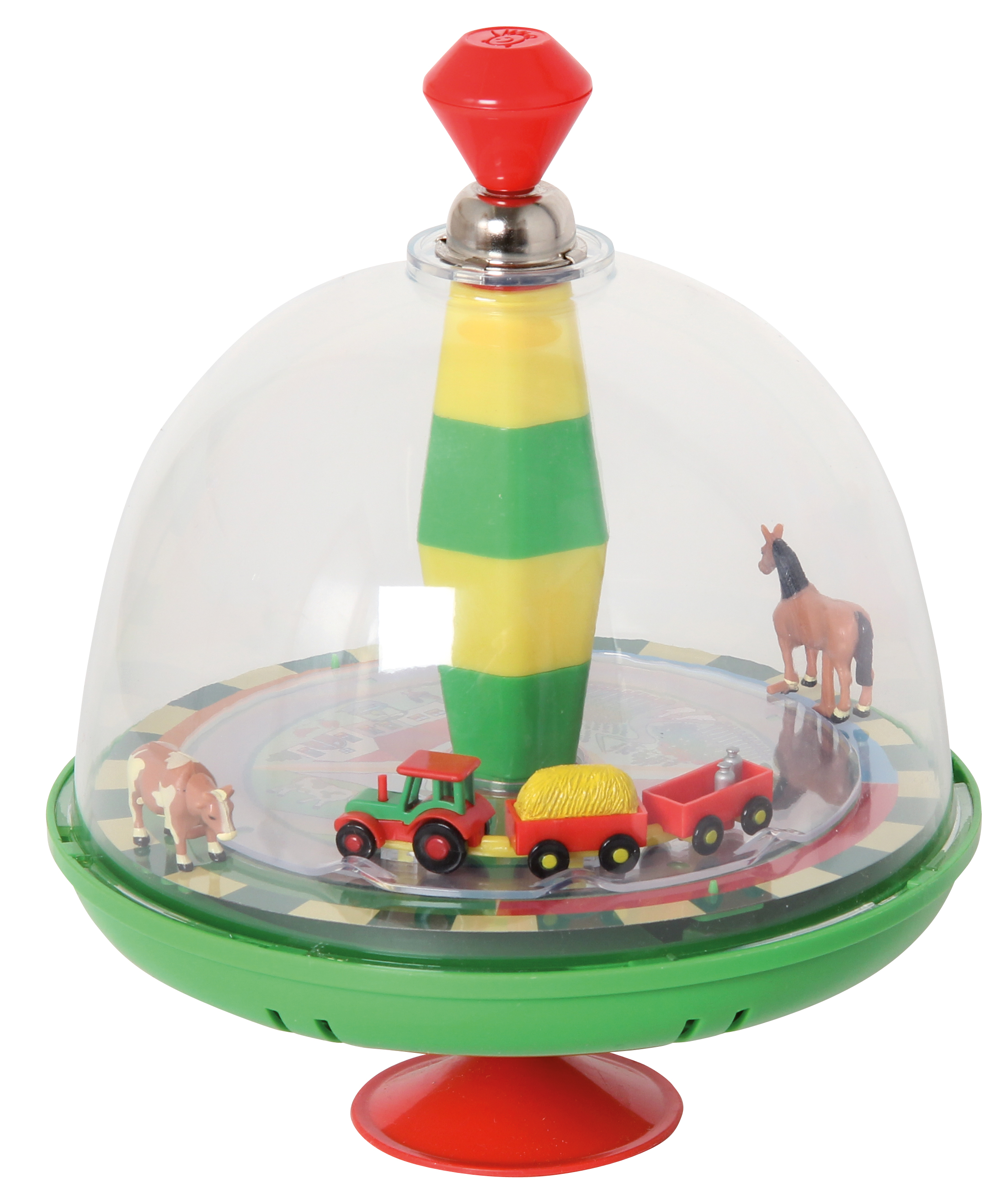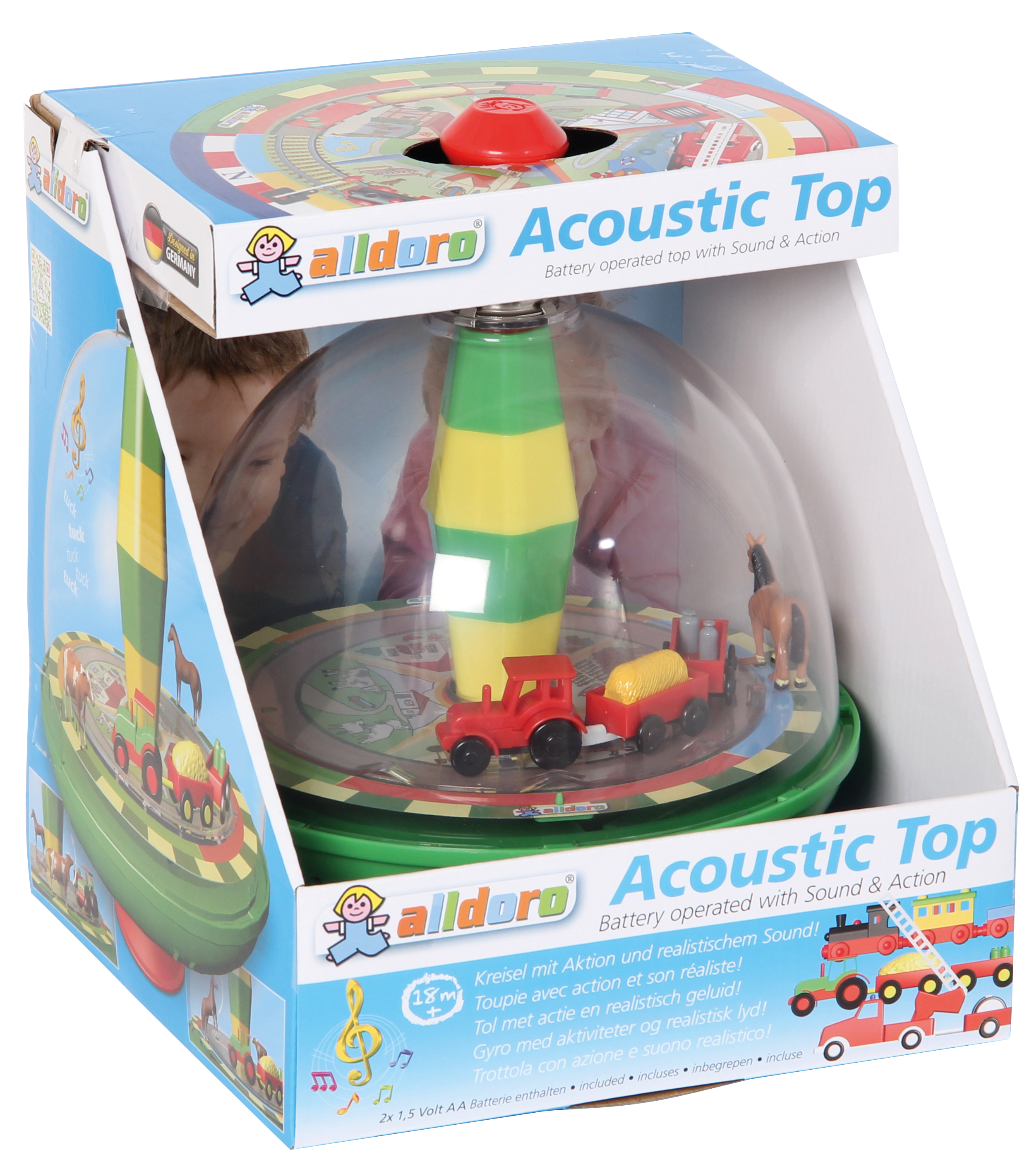 Dreht man den Kreisel, fährt der Traktor im Kreis herum, die Tiere bewegen sich und man hört realistische Bauernhofgeräusche. Inkl. 2 AA 1,5V Batterien. (Hinweise zur Batterieentsorgung liegen der Warensendung bei, oder vorab abzurufen, unter: http://1111ideen. de / content/25-Batterie-Hinweis)