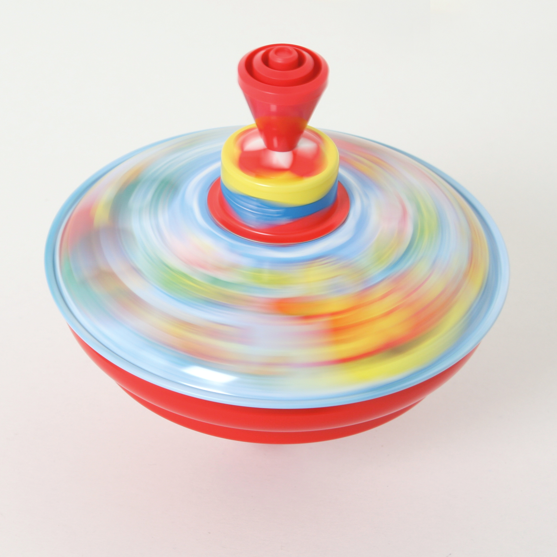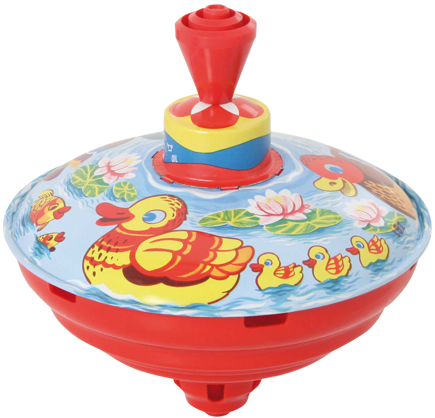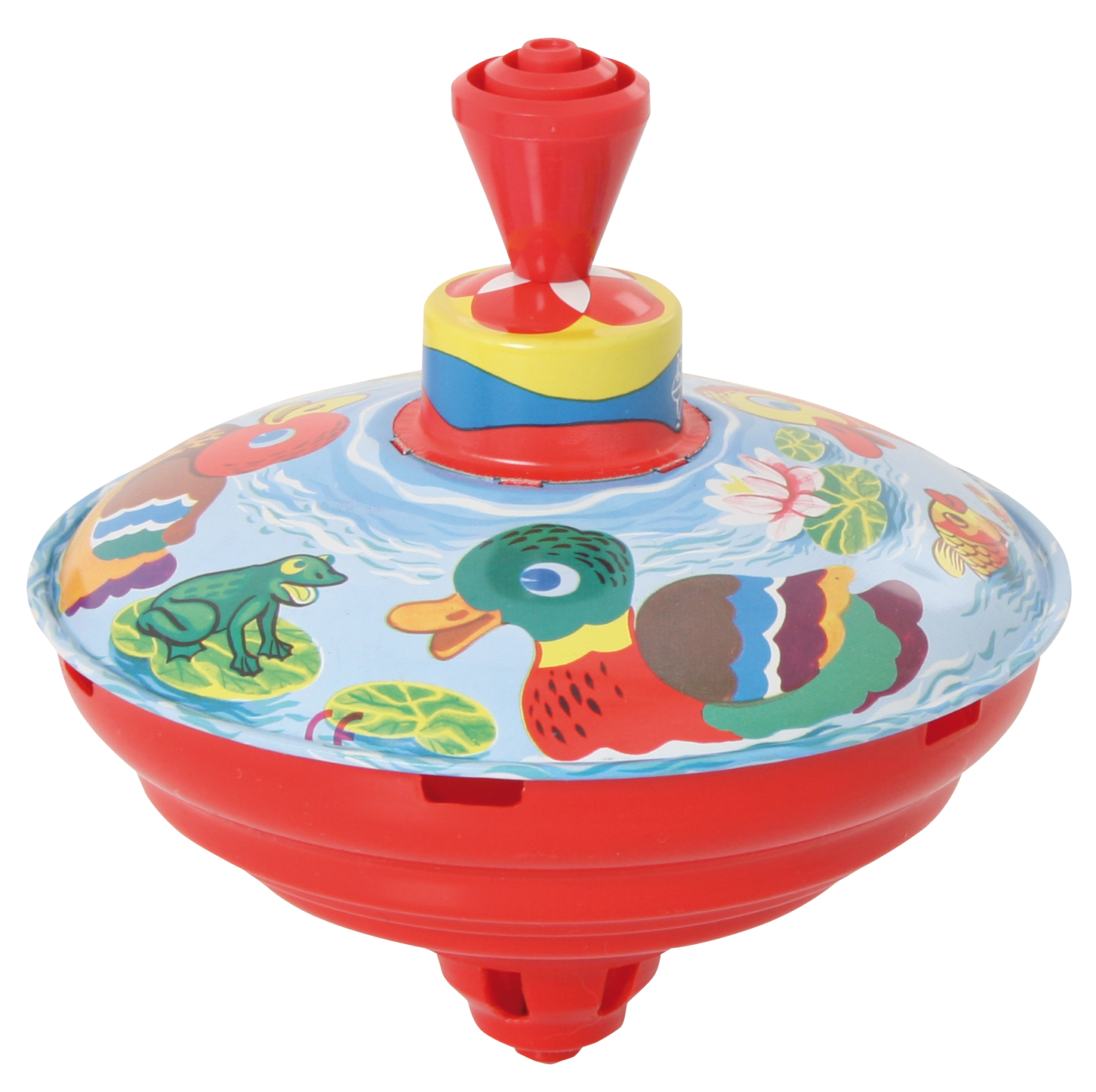 Der kleine Blechkreisel summt beim Drehen. Ab 12 Monaten.