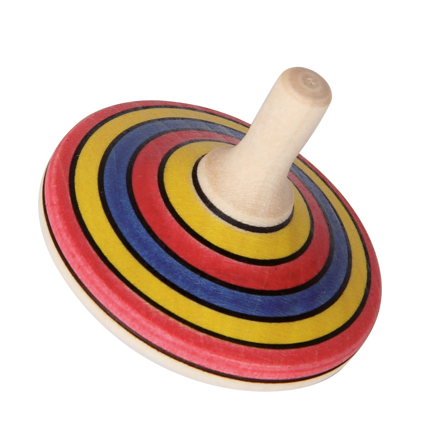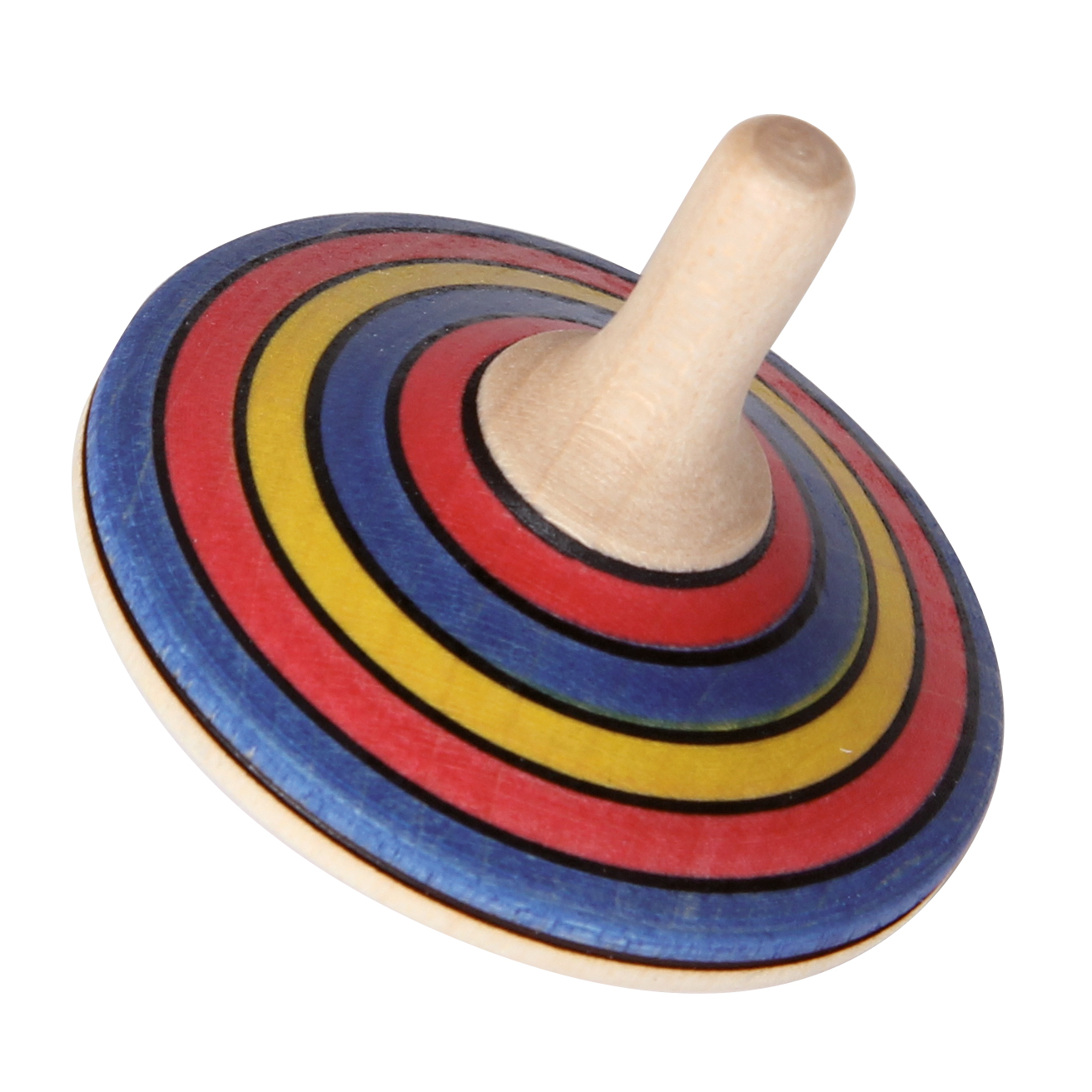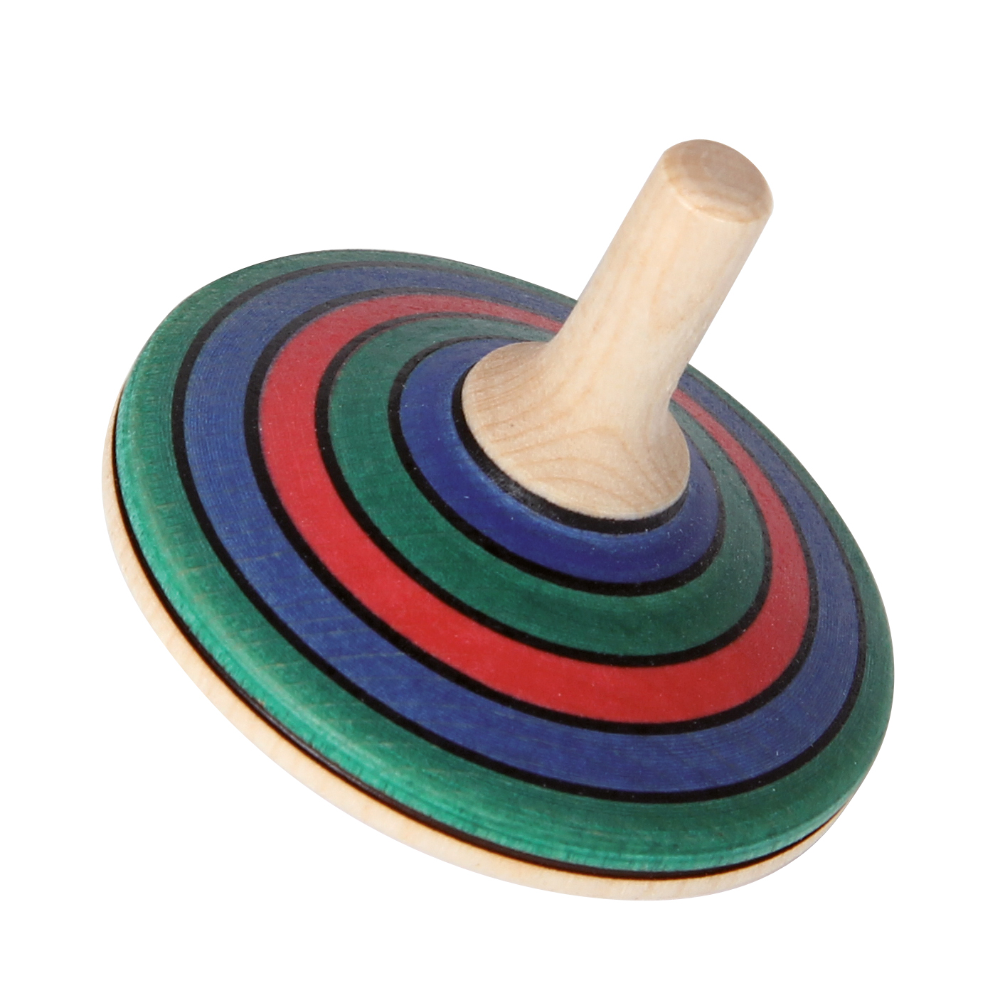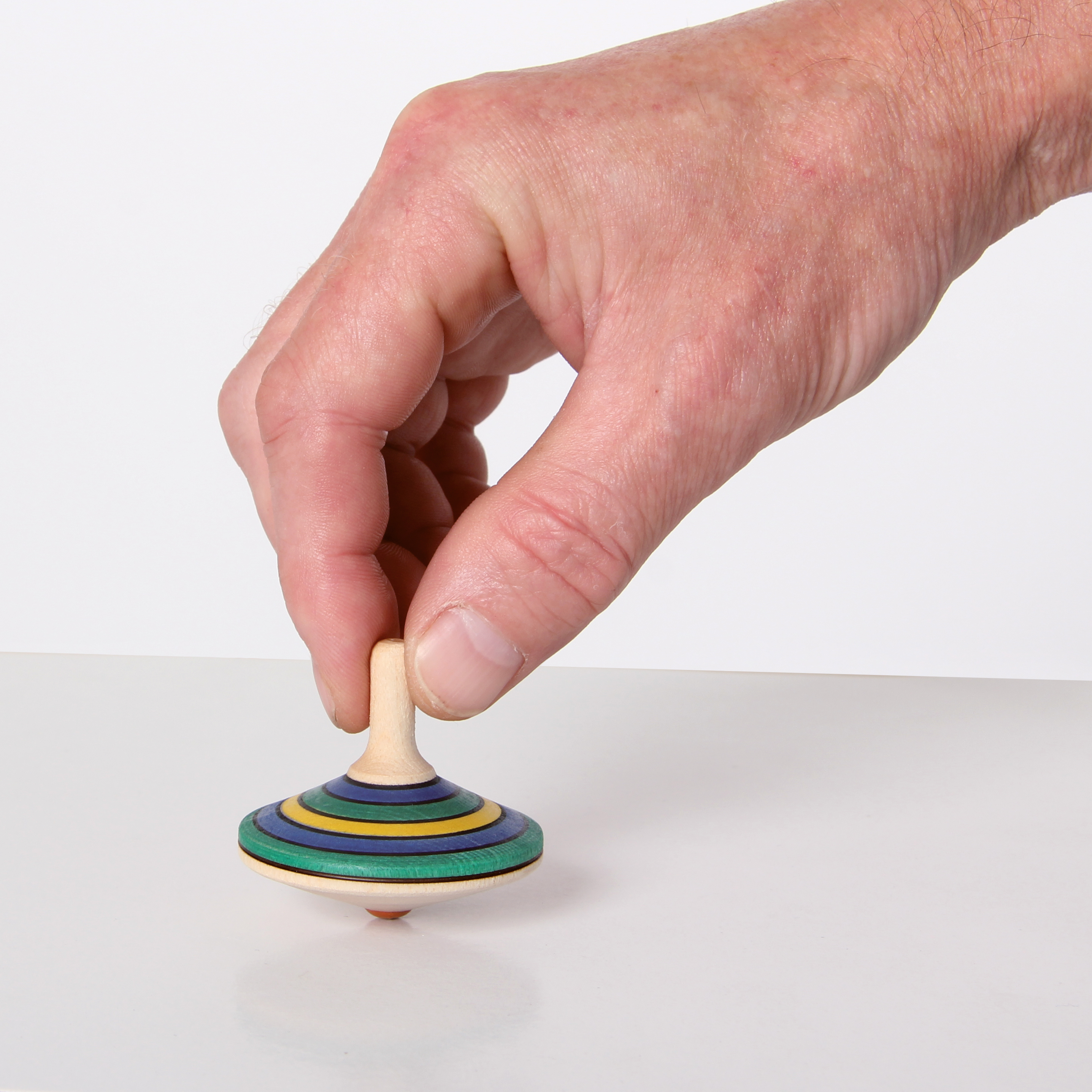 Fingerkreisel aus Ahorn mit Metallspitze. 4 Farbdesigns sortiert.