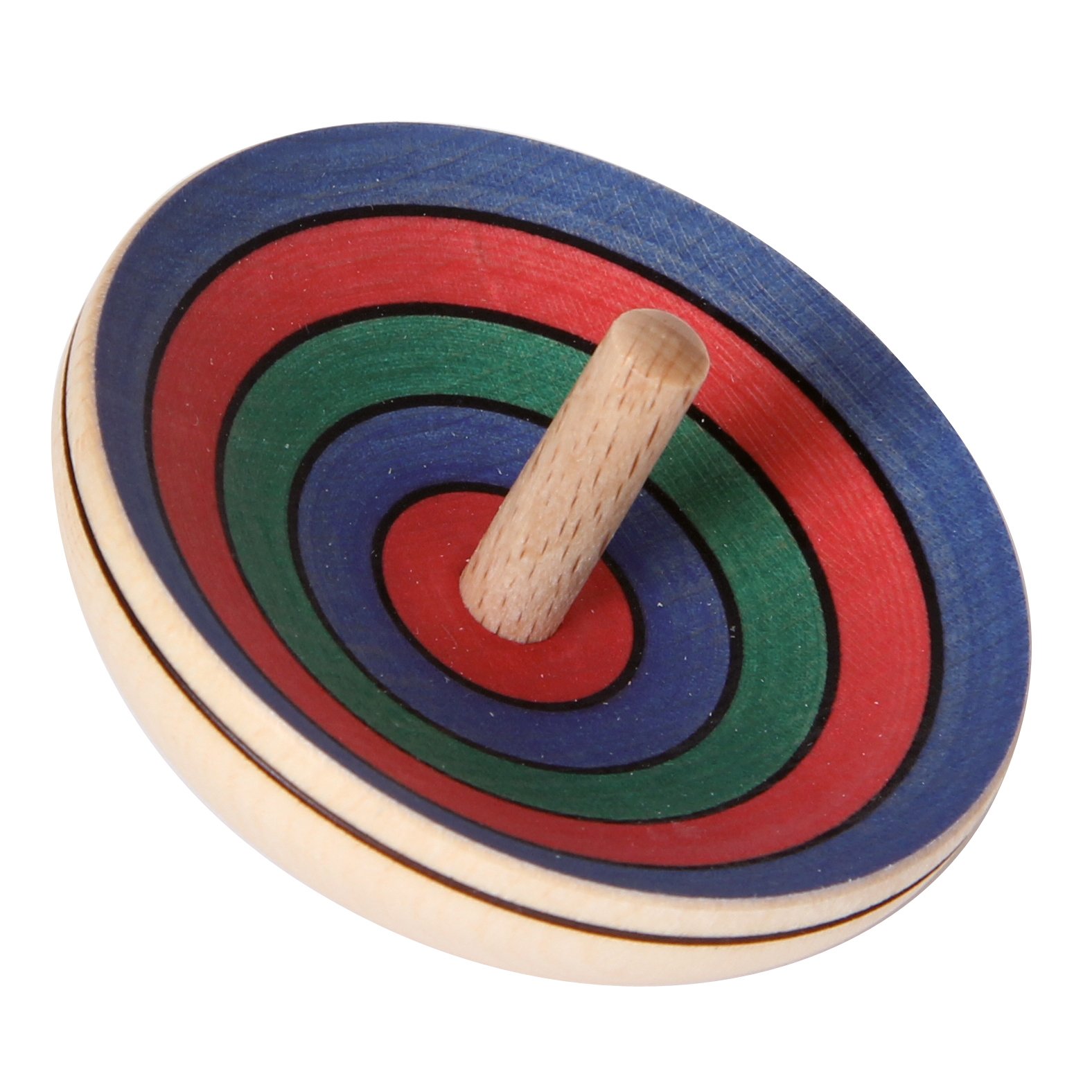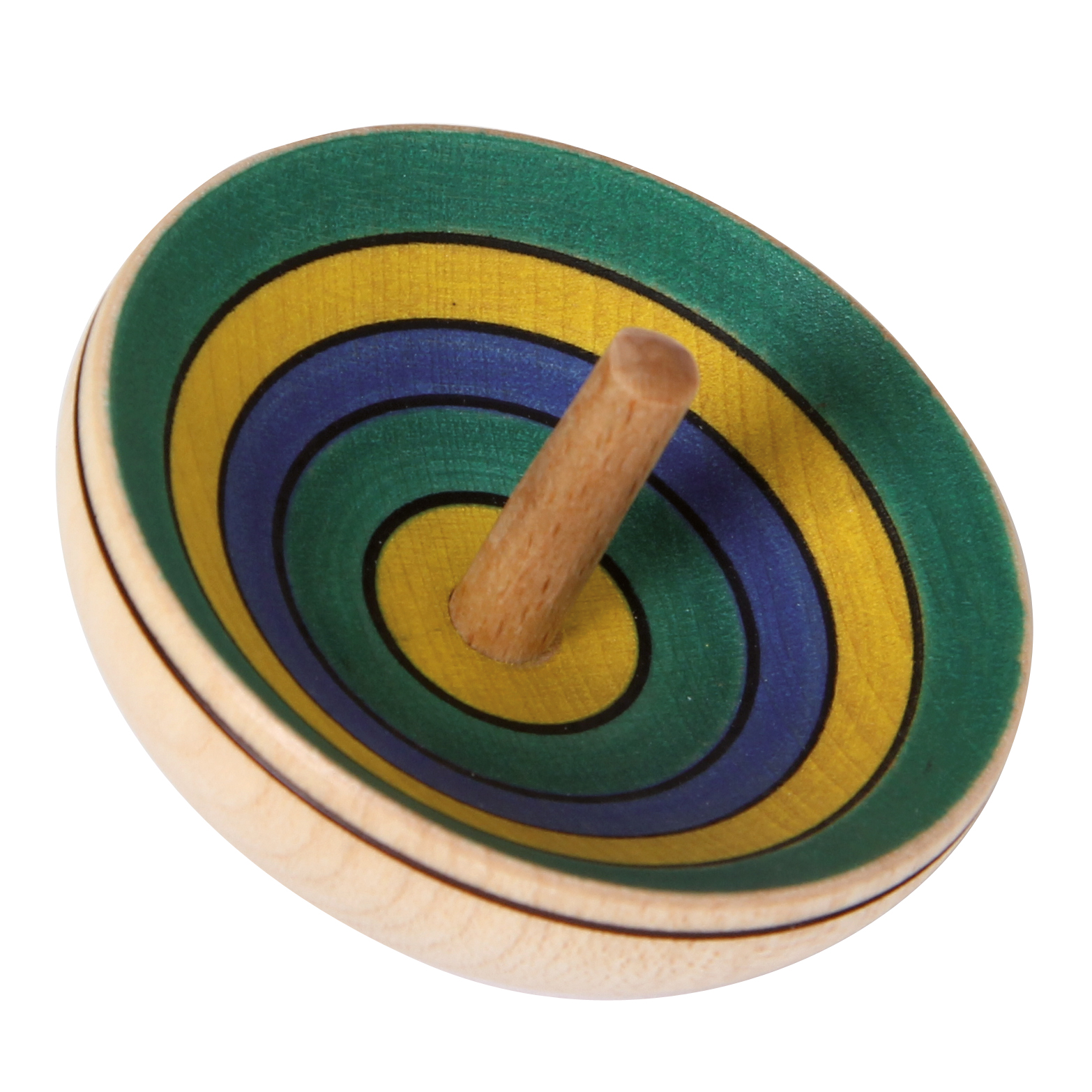 Fingerkreisel aus Ahorn in vier Farbdesigns sortiert.