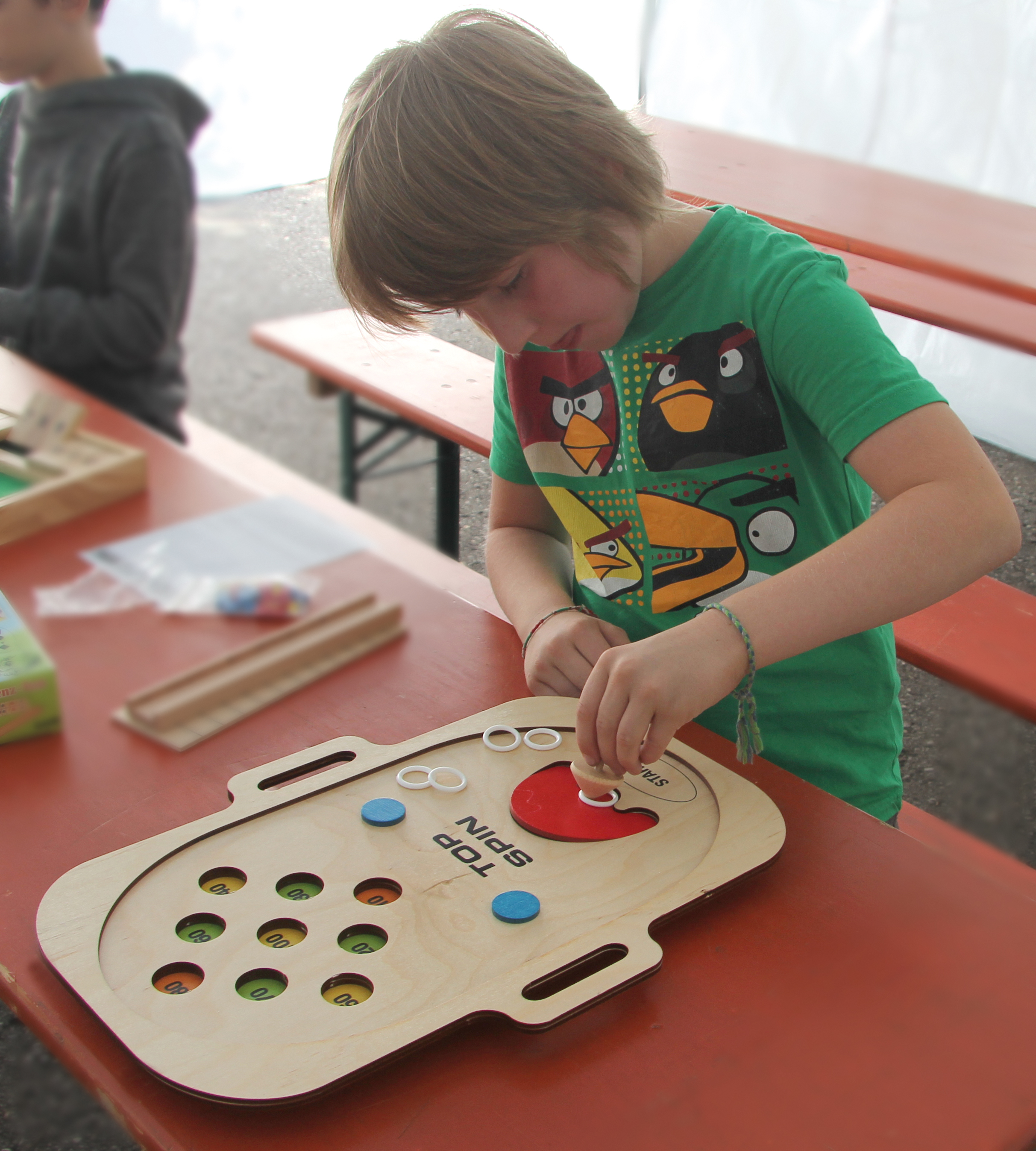 Brandneues Geschicklichkeitsspiel mit Action-Fun-Garantie! Es gilt, die Ringe mit dem Kreisel aufzunehmen und in die Punktefelder zu bugsieren. Durch geschicktes Bewegen des Spielbrettes wird der Kreisel in die richtige Richtung geführt. Wer die höchste Punktzahl erreicht, gewinnt.