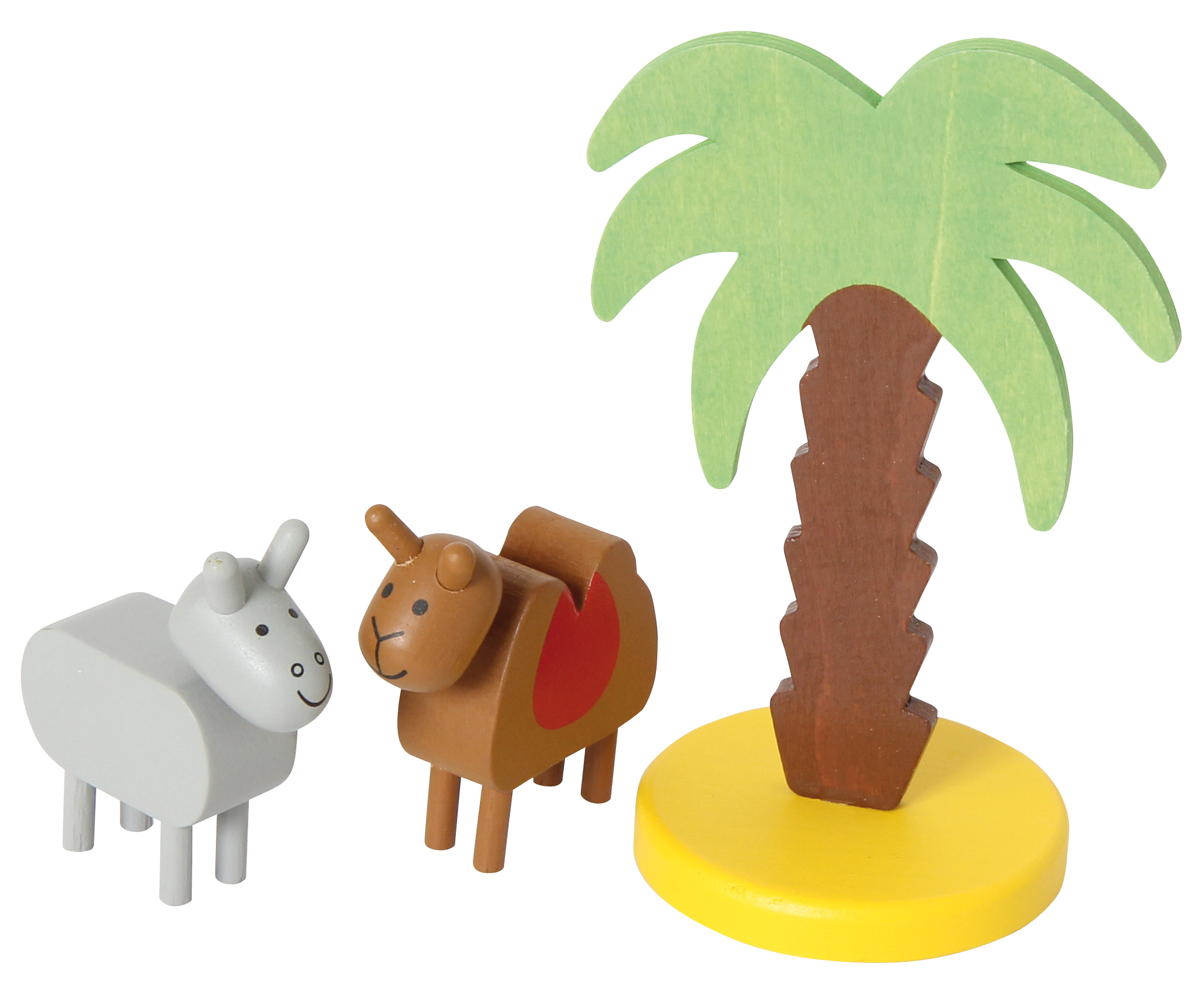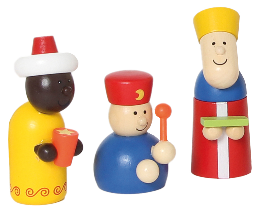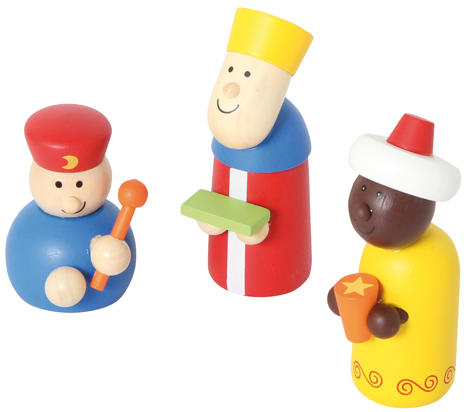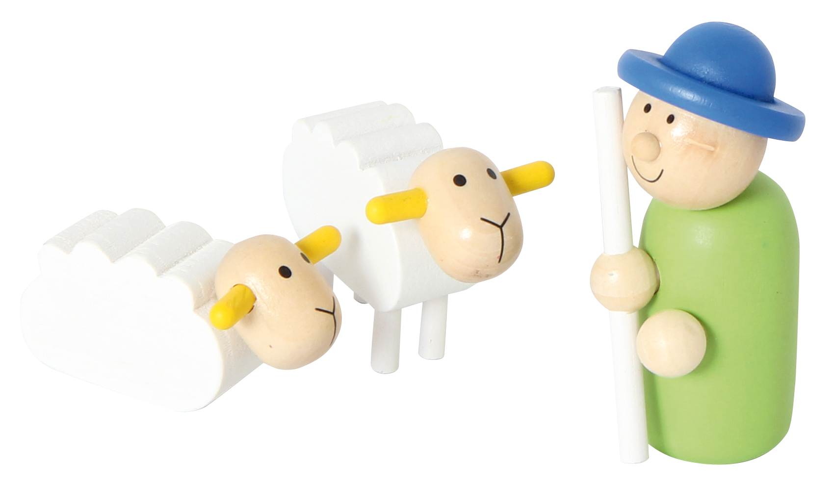 Originelles Krippenset aus Holz in kindgerechtem Design. Zum Spielen und Dekorieren. Größe des Stalles: 23 x 11,5 x 16 cm. Höhe einer Figur (Josef): 9 cm.
