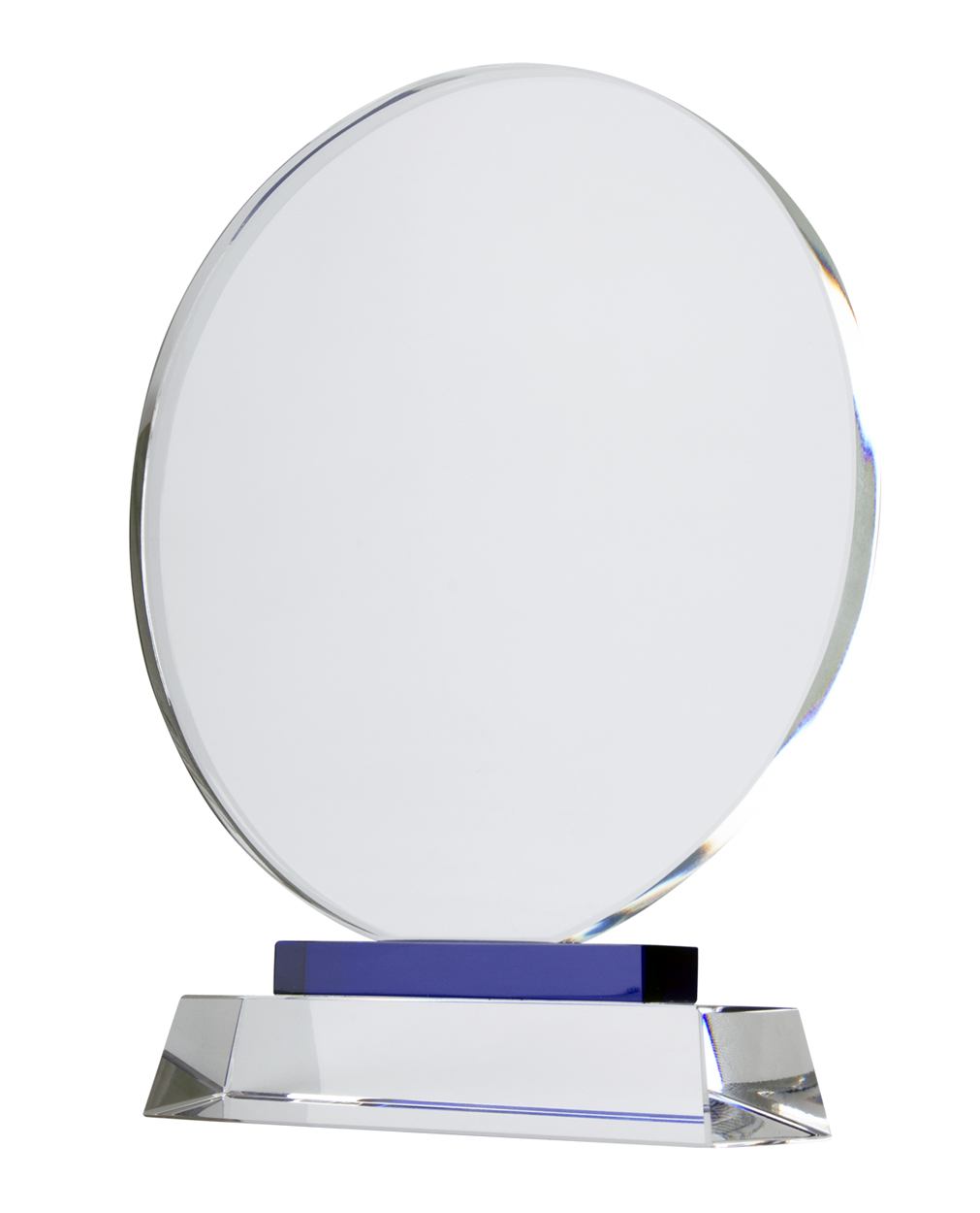 Runde Trophäe mit Glasfuß. Einzeln verpackt in blauer Geschenkbox mit Seideneinlage und magnetischem Verschluss.