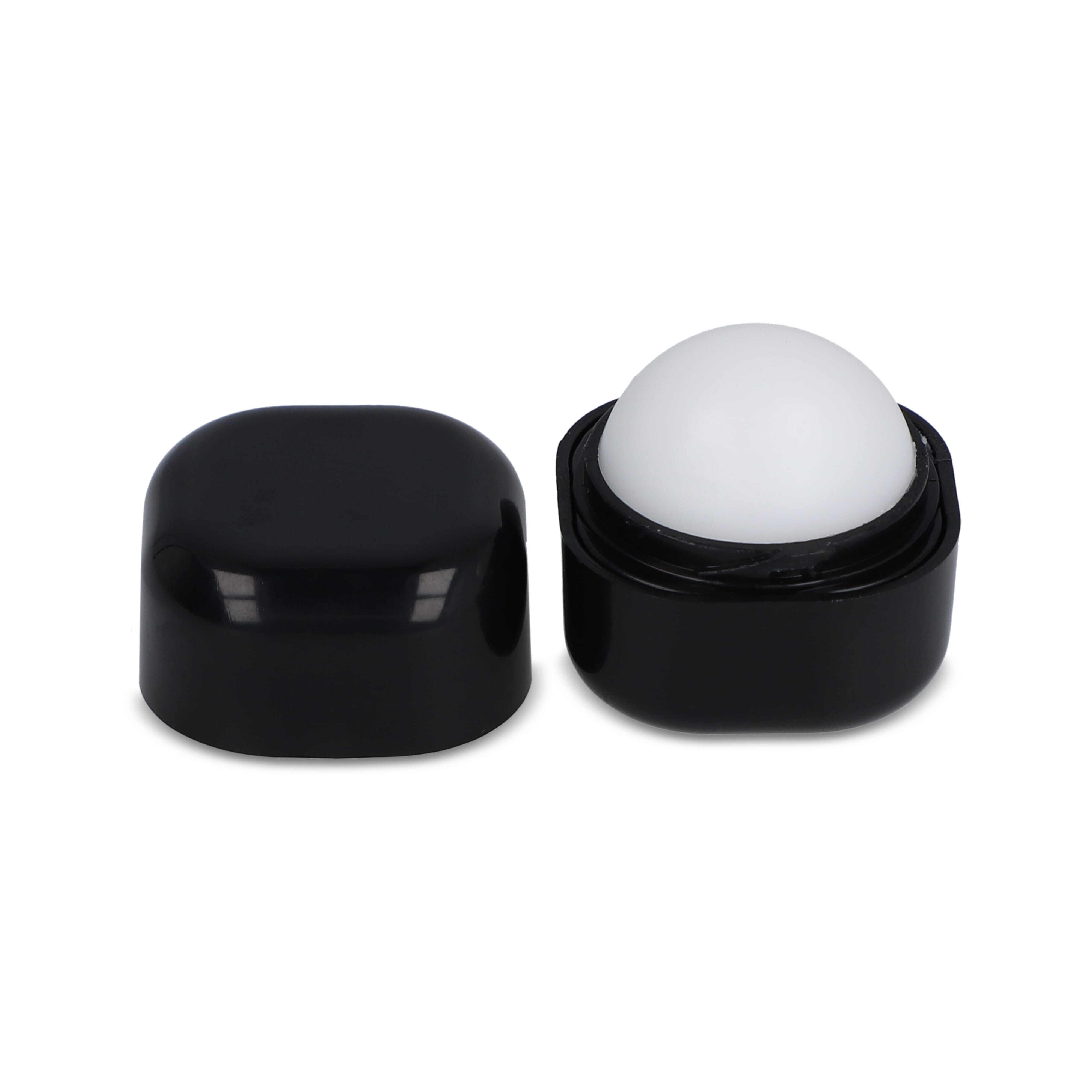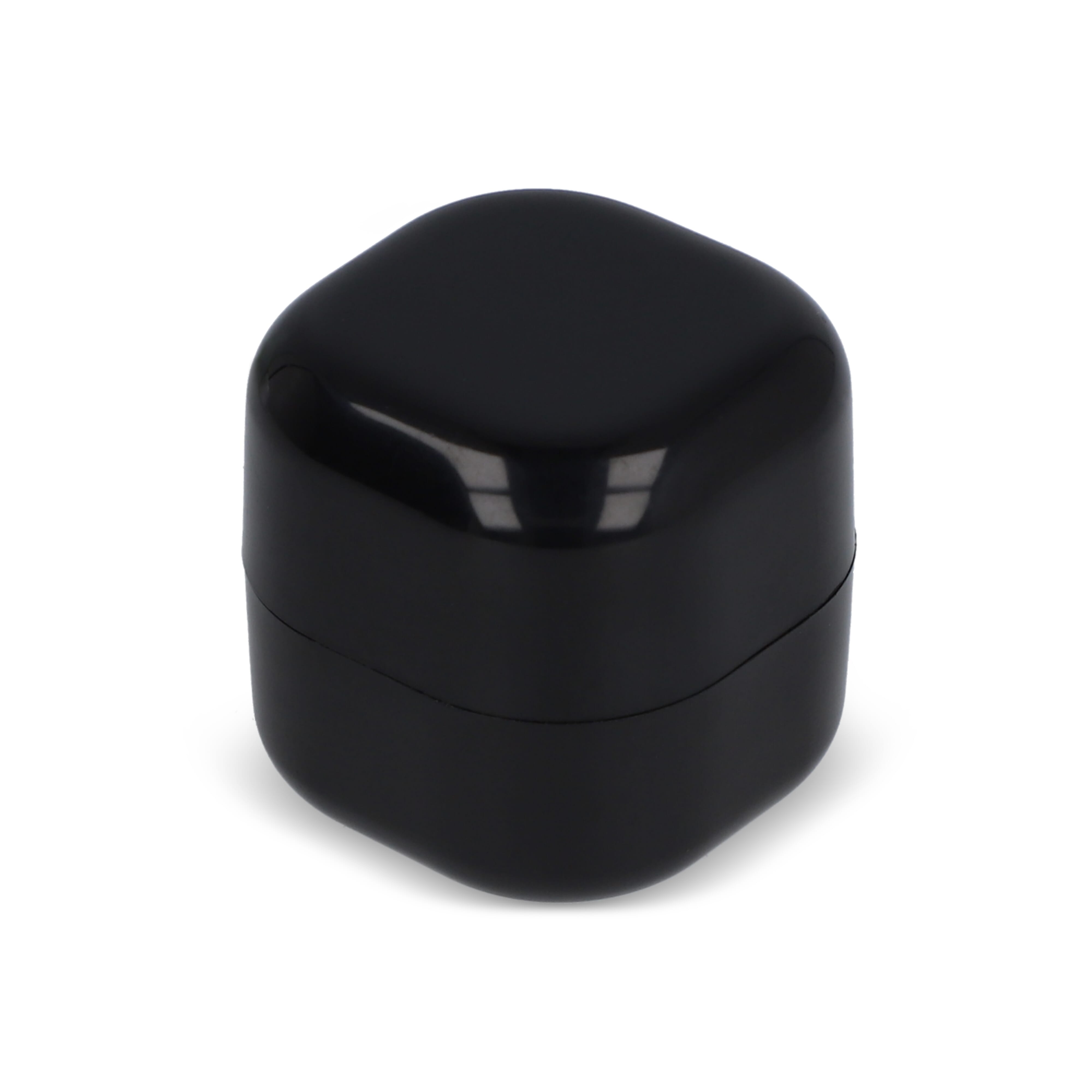 Lippenbalsam in einem würfelförmigen Behälter aus recyceltem ABS. Die abgerundete Kugelform im Inneren sorgt für ein sanftes Auftragen der feuchtigkeitsspendenden Pflege.