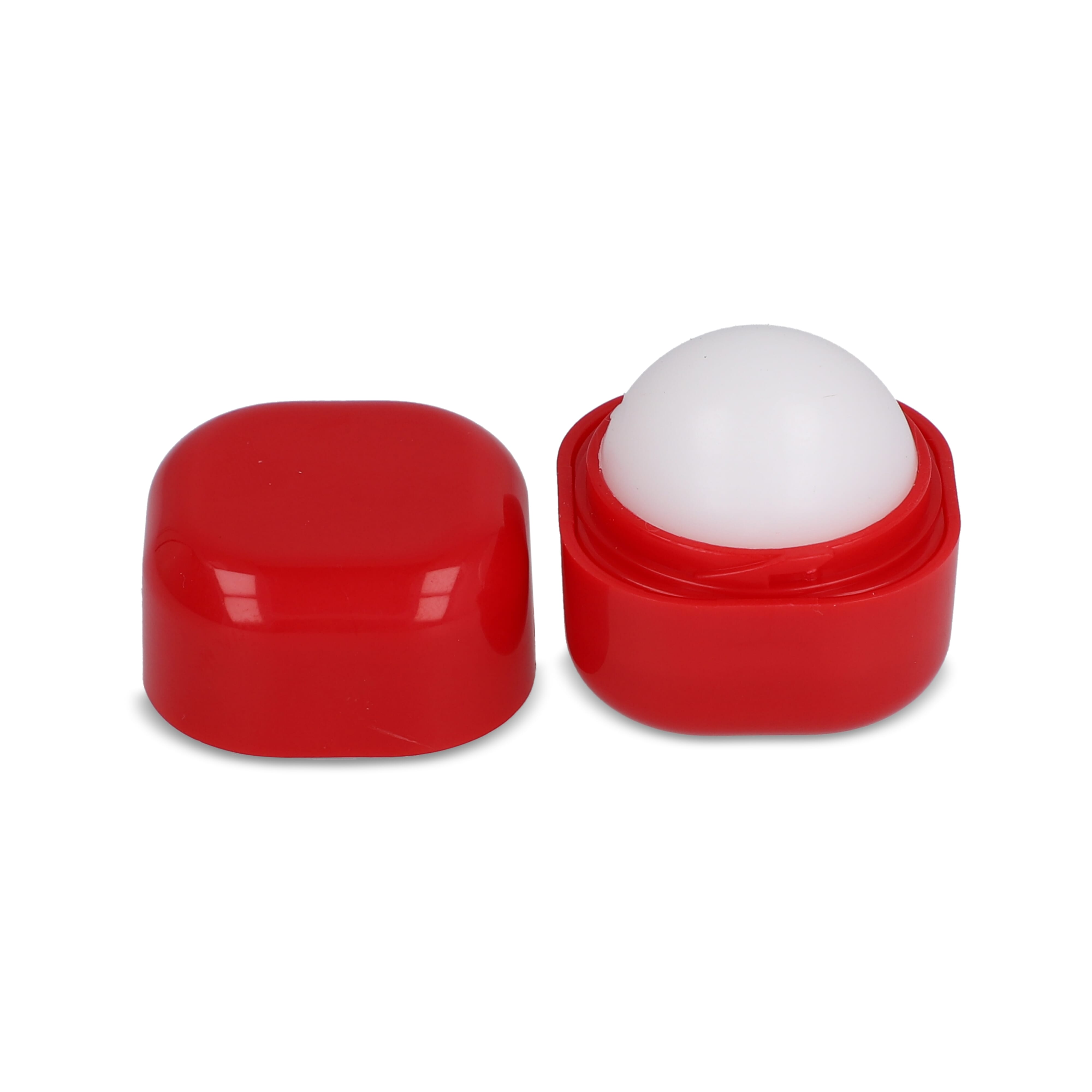 Lippenbalsam in einem würfelförmigen Behälter aus recyceltem ABS. Die abgerundete Kugelform im Inneren sorgt für ein sanftes Auftragen der feuchtigkeitsspendenden Pflege.