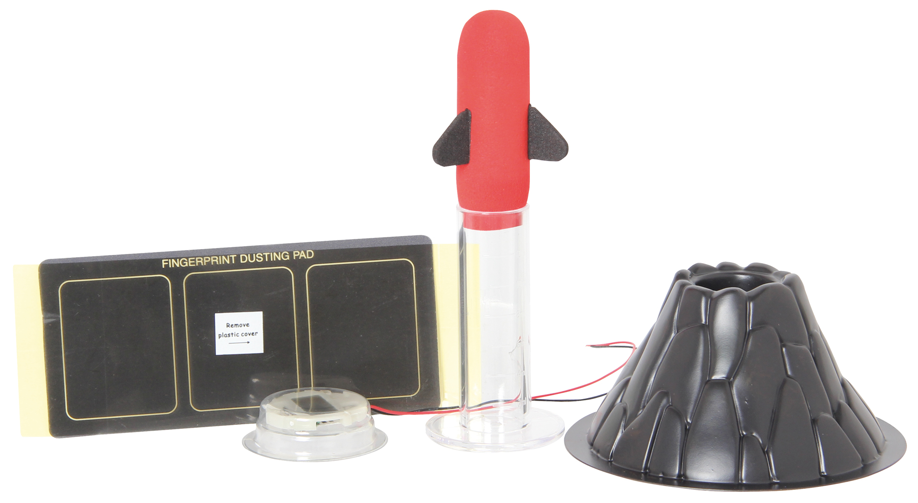 Mit diesem Set verwandeln Kids ab 8 alltägliche Materialien in spannende Experimente. Sie versorgen eine Uhr mit Strom aus einer Zitrone, lassen eine Rakete durch Essig und Backpulver starten und bringen einen Tischvulkan zum Ausbruch.
