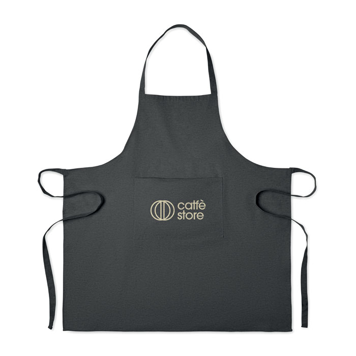 Küchenschürze mit verstellbarem Nackenband und 1 Fronttasche. Recycelte Baumwolle 220 g / m². (80 % recycelte Baumwolle, 20 % Baumwolle)