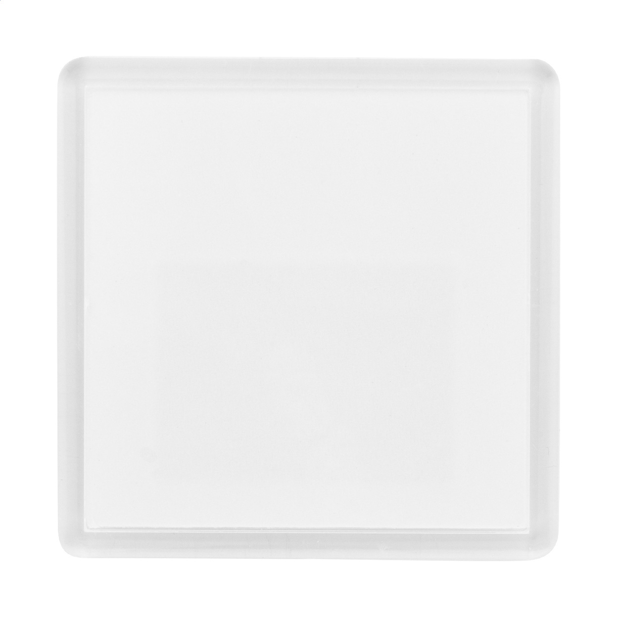 Quadratischer Kühlschrankmagnet aus Acryl mit individueller, vollfarbiger Papiereinlage. Der Preis ist inkl. Digitaldruck. Mindestmenge: 100 Stk.