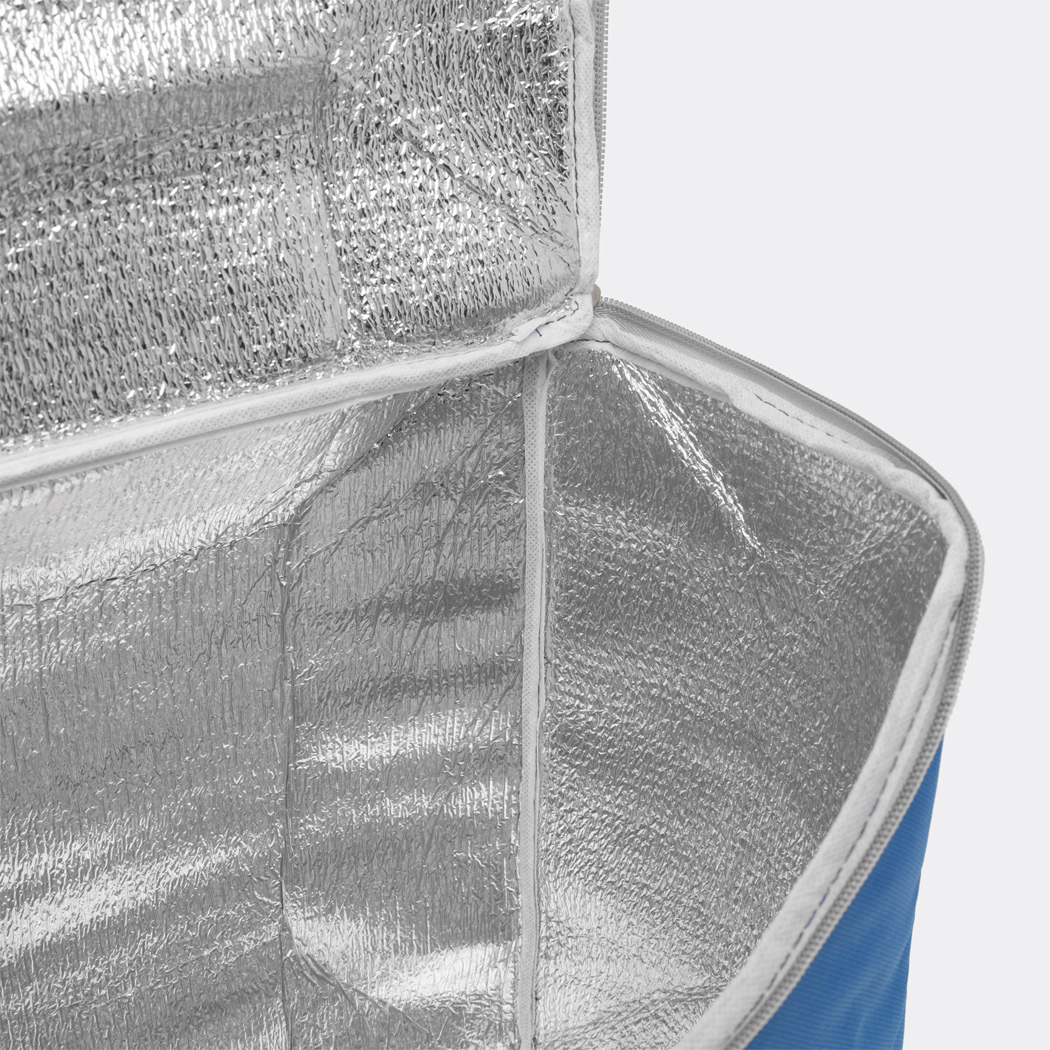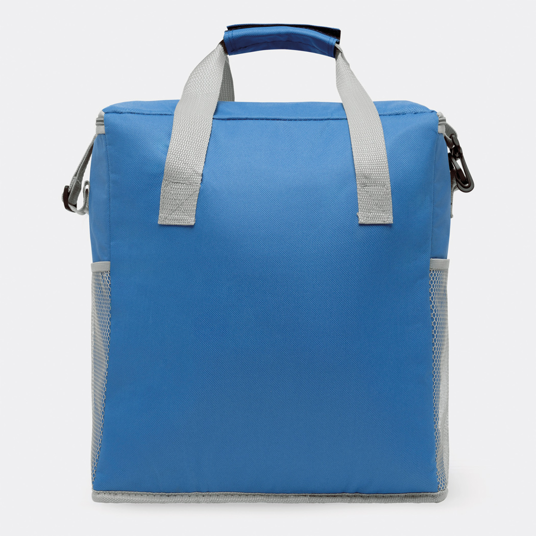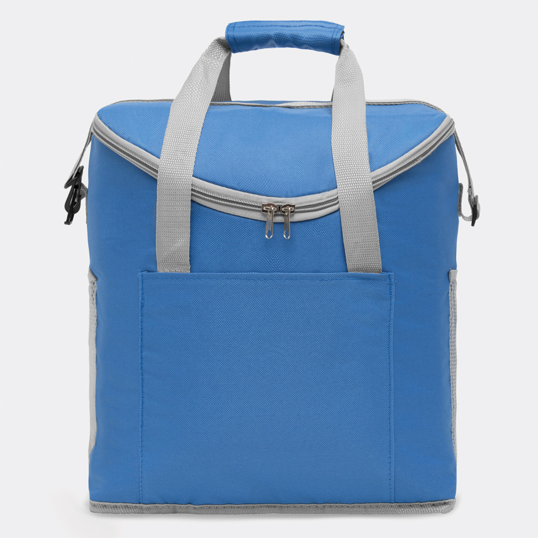 Kühltasche FROSTY: 1 Einsteckfach auf der Front, mit isoliertem Reißverschluss-Hauptfach, 2 seitliche Netz-Einsteckfächer, verstärkte Tragegriffe, verstell- und abnehmbarer Schultergurt – ideal für Picknick, Grillen und auf Reisen
