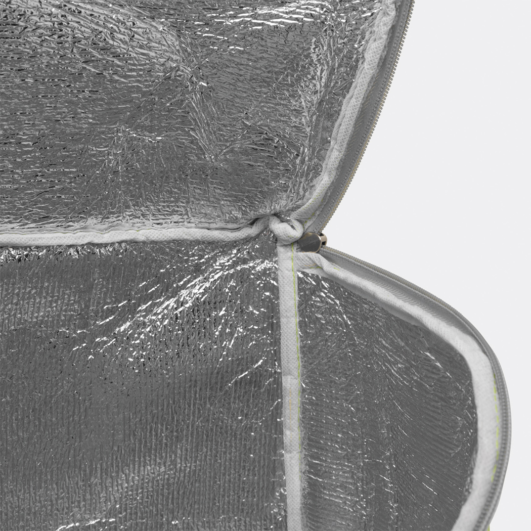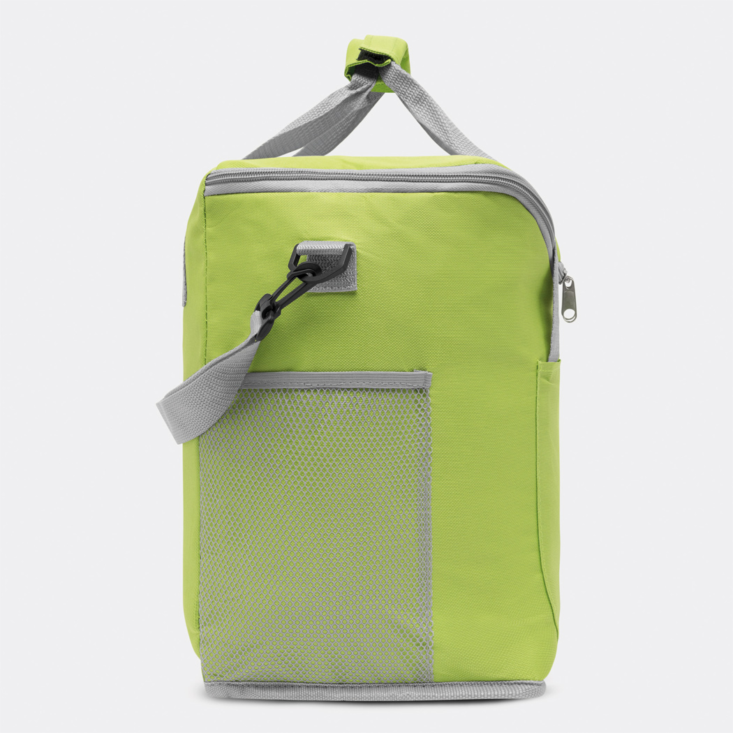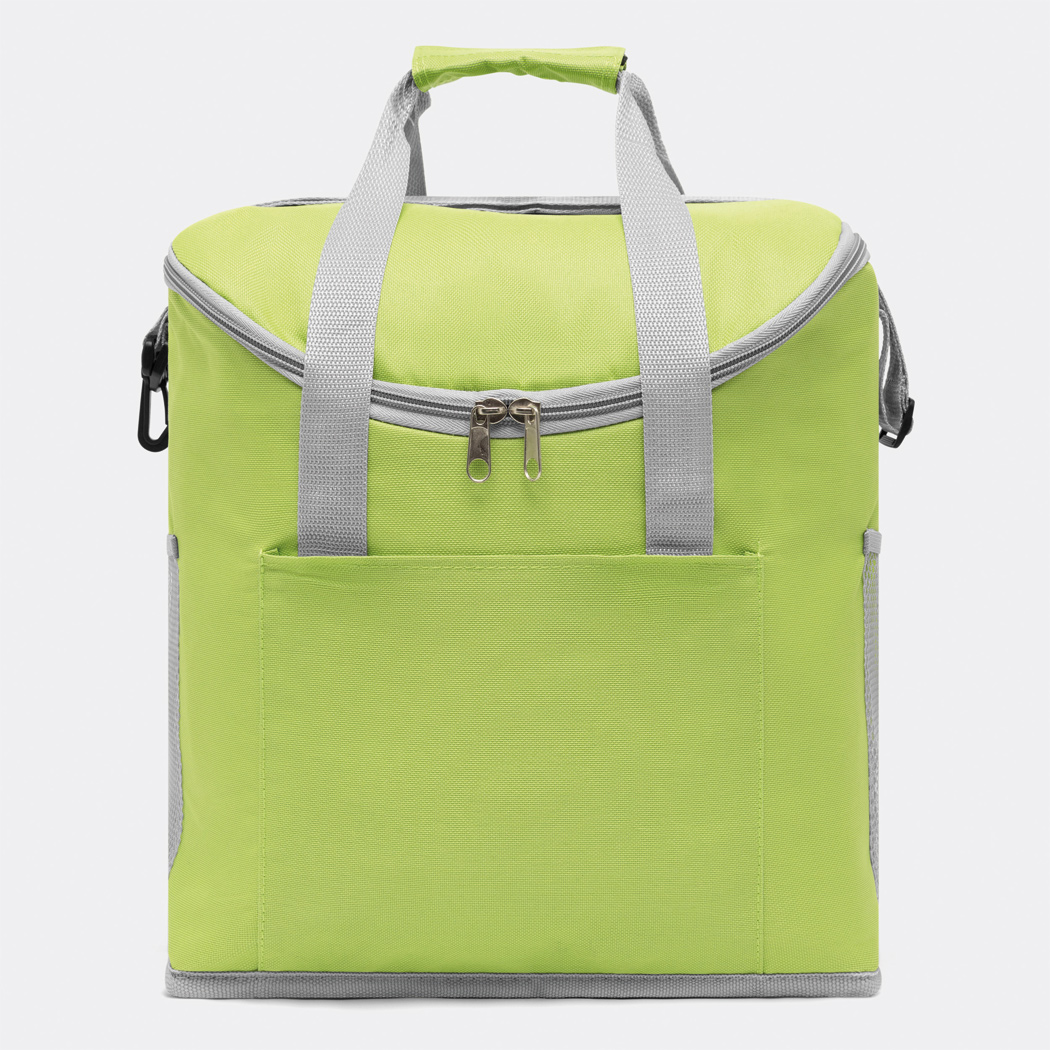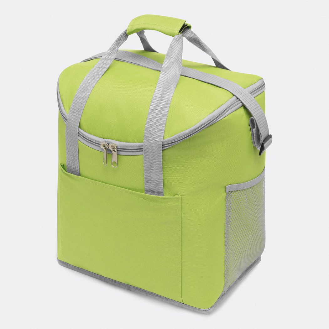 Kühltasche FROSTY: 1 Einsteckfach auf der Front, mit isoliertem Reißverschluss-Hauptfach, 2 seitliche Netz-Einsteckfächer, verstärkte Tragegriffe, verstell- und abnehmbarer Schultergurt – ideal für Picknick, Grillen und auf Reisen