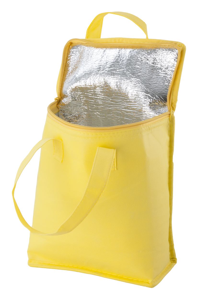Kühltasche aus Non-Woven mit Reißverschluss und einer Innenbeschichtung aus geschäumter Thermofolie. Für 6 Getränkedosen (0,33 l) oder 3 Flaschen (0,5 l).