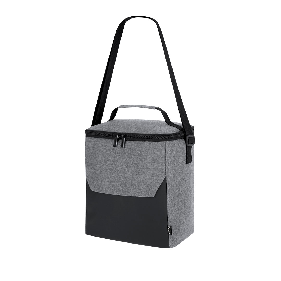 Kühler aus strapazierfähigem RPET 600D in Kombination mit PU. Enthält Hauptfach, mit Reißverschluss und doppeltem Metal-Reißverschluss, mit isoliertem inneren PEVA. Vordertasche mit Reißverschluss. Mit verstellbarem Schultergurt und gepolstertem Handgriff an der Oberseite. Externe Etikett mit RPET-Auszeichnung. Das RPET-Material wird aus recyceltem Kunststoff hergestellt, um die Wiederverwendung von Plastikabfällen zu fördern und zur Nachhaltigkeit des Planeten beizutragen.
