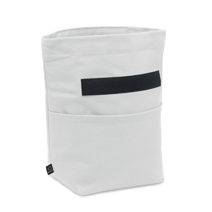 Kühltasche aus aus recyceltem Polycotton (70% recycelte Baumwolle, 30% recycelter Polyester) mit Rolltop-Klettverschluss. Isolierung: 3mm PE- Schaum mit 12C PEVA.