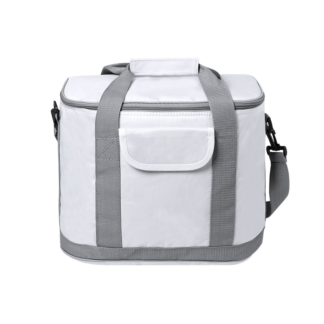 All-Terrain-Kühlbox aus strapazierfähigem 420D-Polyester, mit Hauptfach mit Reißverschluss und Fronttasche mit Klettverschluss. PEVA isothermischer Innenraum, mit verstellbarem Schultergurt und Karabinerhaken. Widerstandsfähigkeit bis zu 8 kg Gewicht.