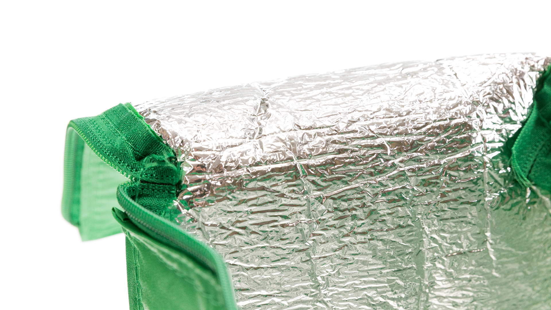 Kühltasche für 4 Dosen aus robustem PVC in kräftigen Farben. Isotherm-Innenraum in Aluminium-Ausführung. Mit Reißverschluss und farblich passendem Tragegriff.