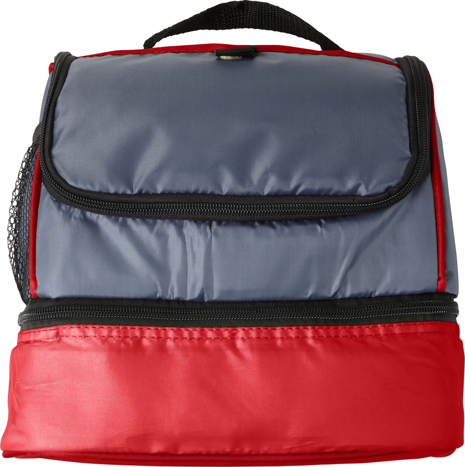 Kühltasche aus Polyester (210D), mit zwei RV-Fächern, seitlichem Netzfach und Tragegriff.